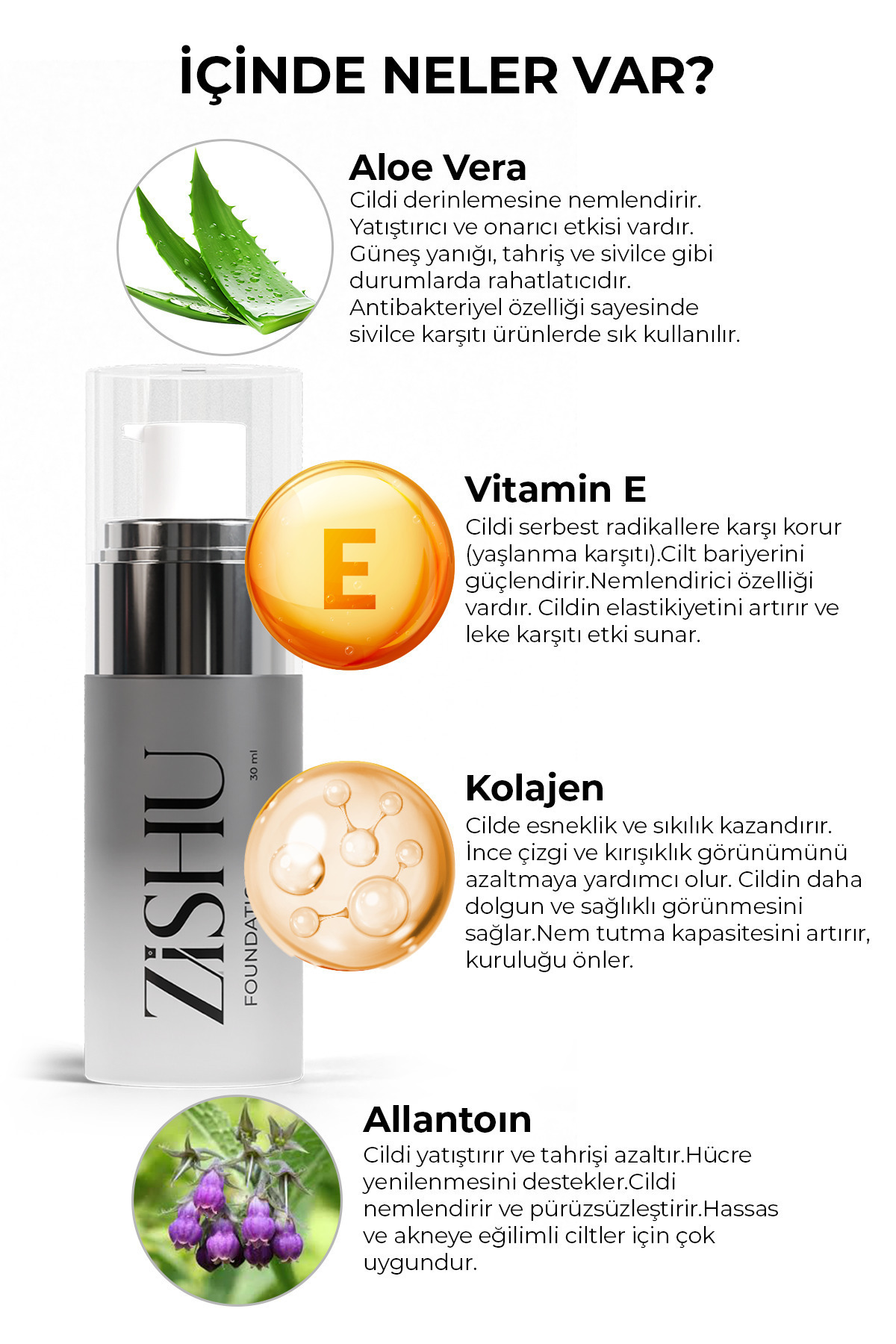 •Aloe Vera & Allantoin: Cildi besler, yatıştırır ve nemlendirir.