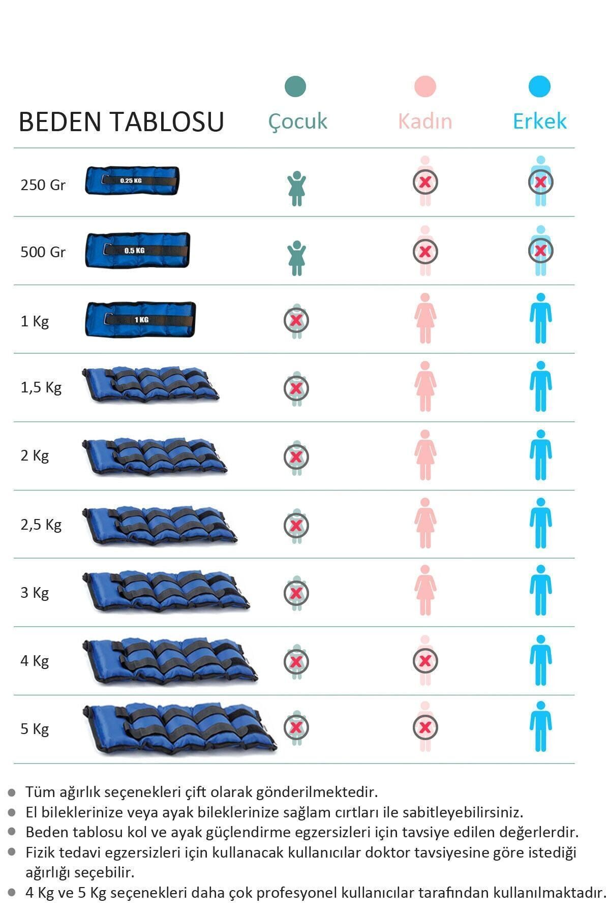 2 adet x 0,5 kg ayak ağırlığı bulunmaktadır.