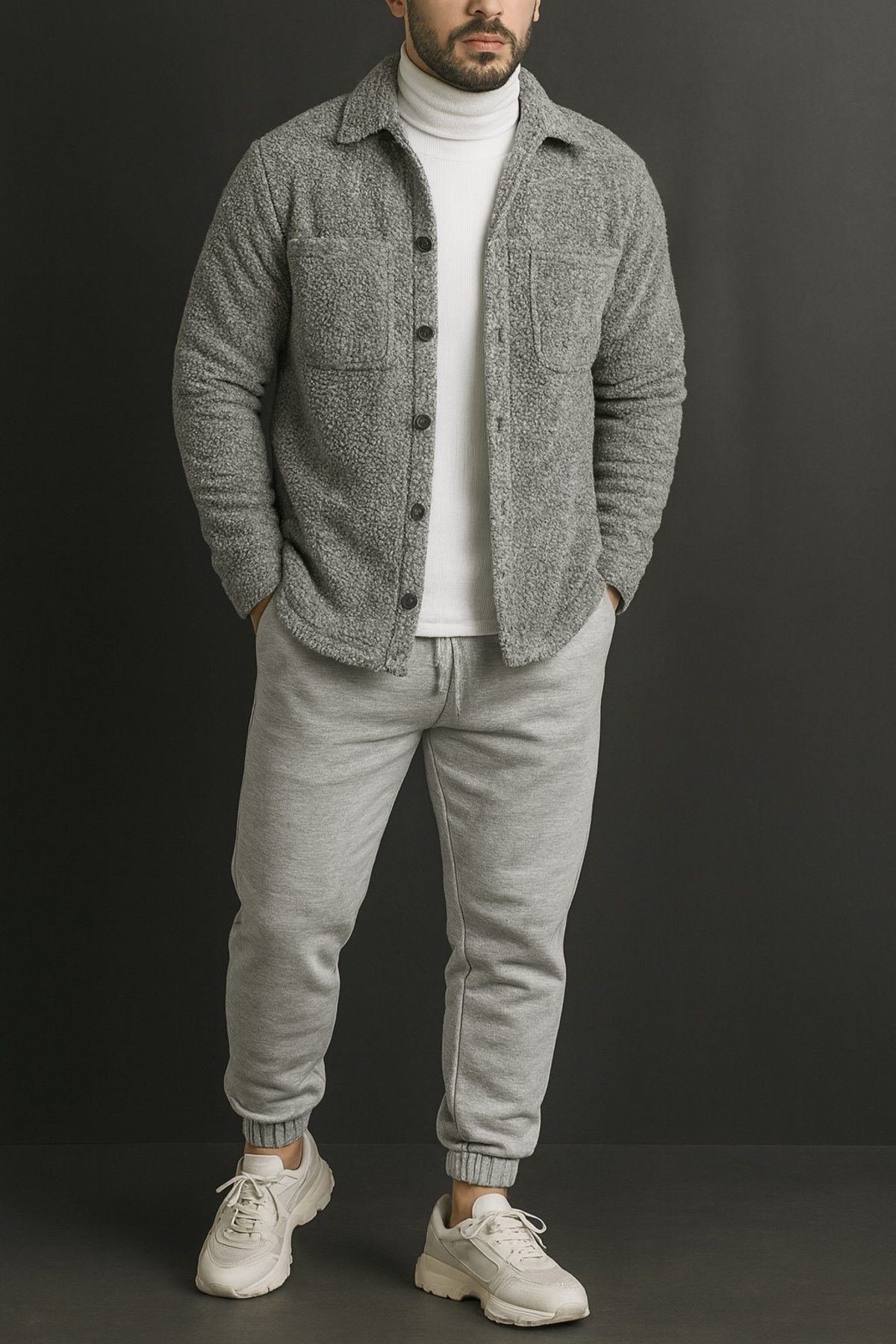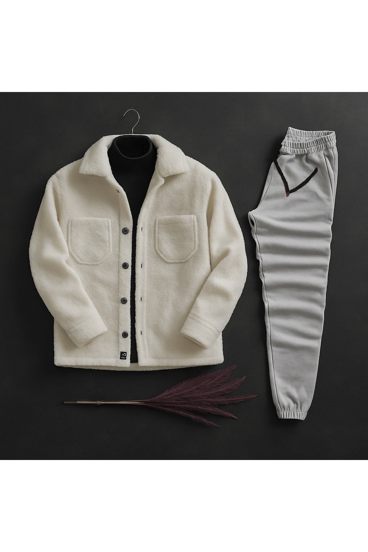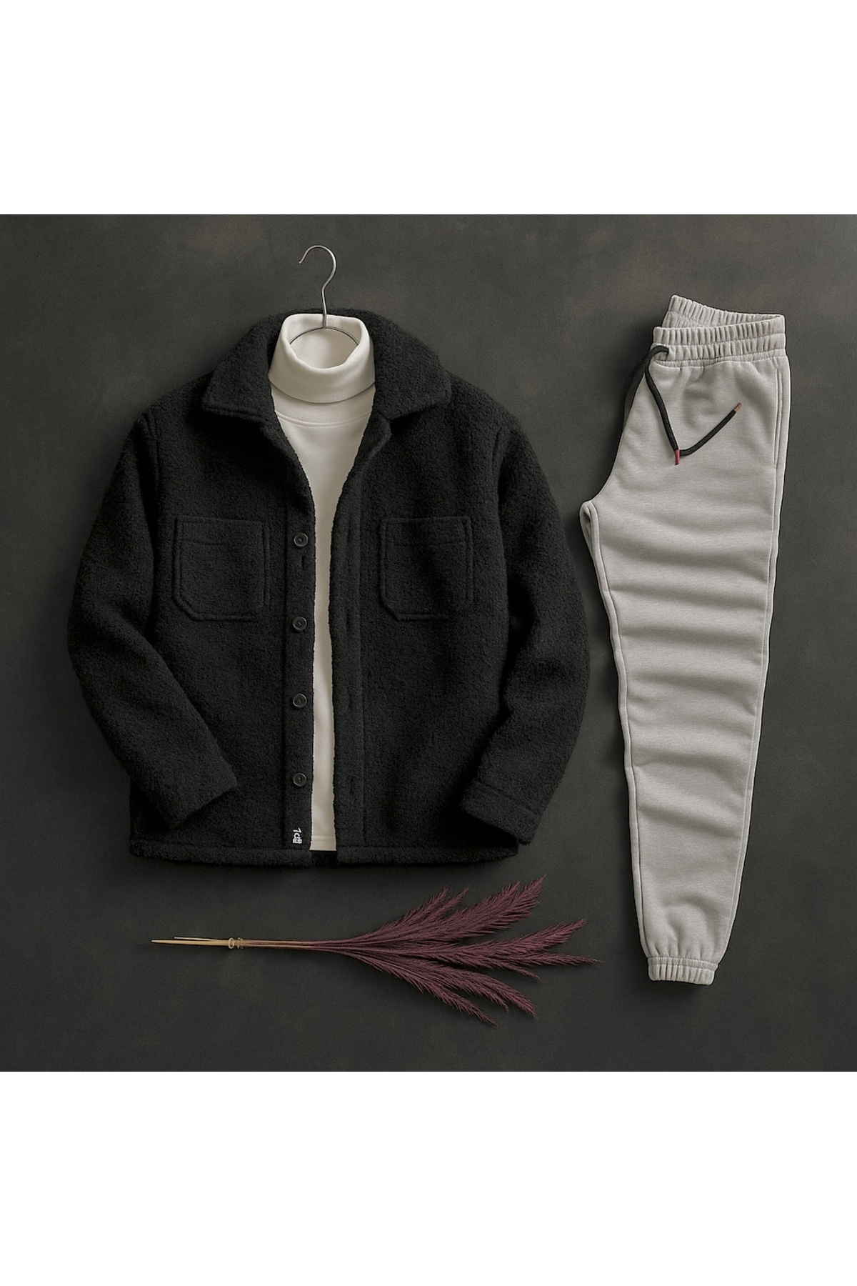 - Sokak stili için ideal, rahat ve şık bir kombin sunan üç parçalı takım