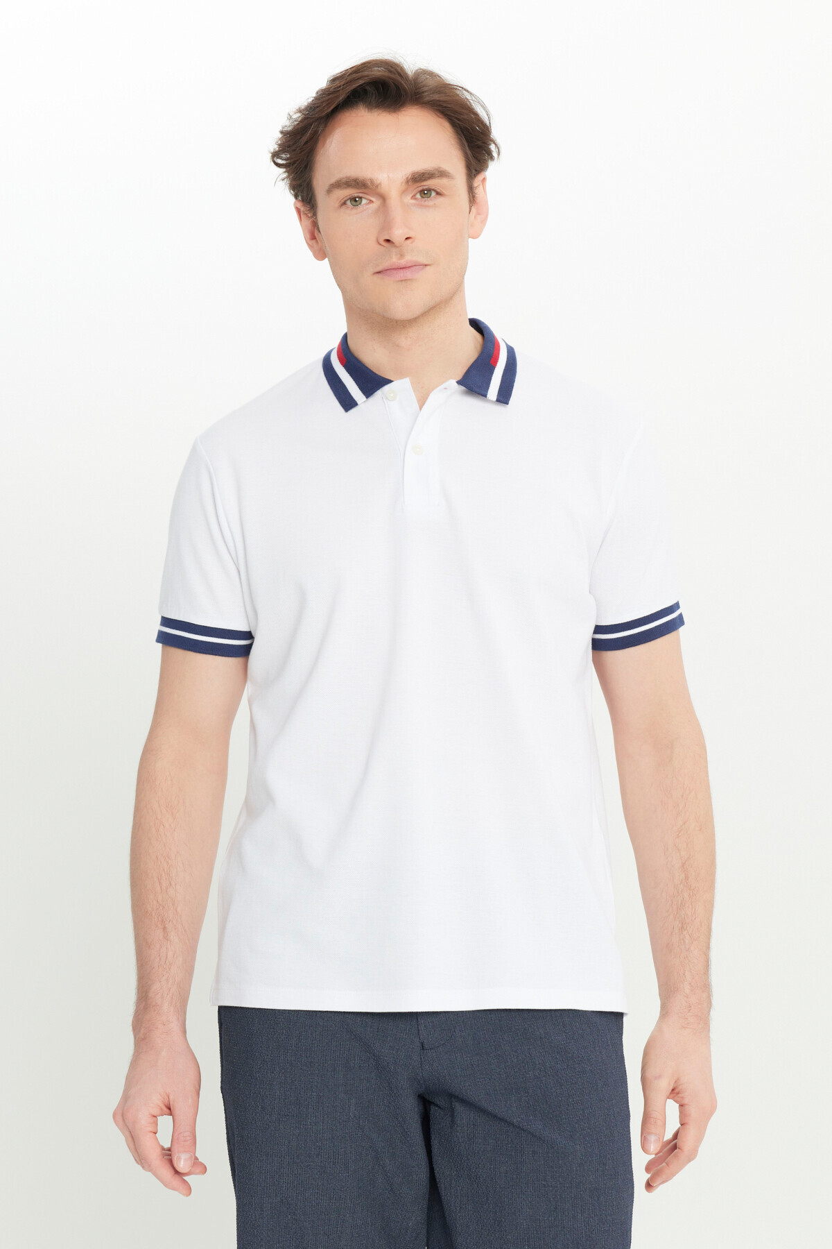 Günlük kullanım için ideal, rahat ve şık bir stil sunan açık mavi slim fit dar kesim polo yaka tişört