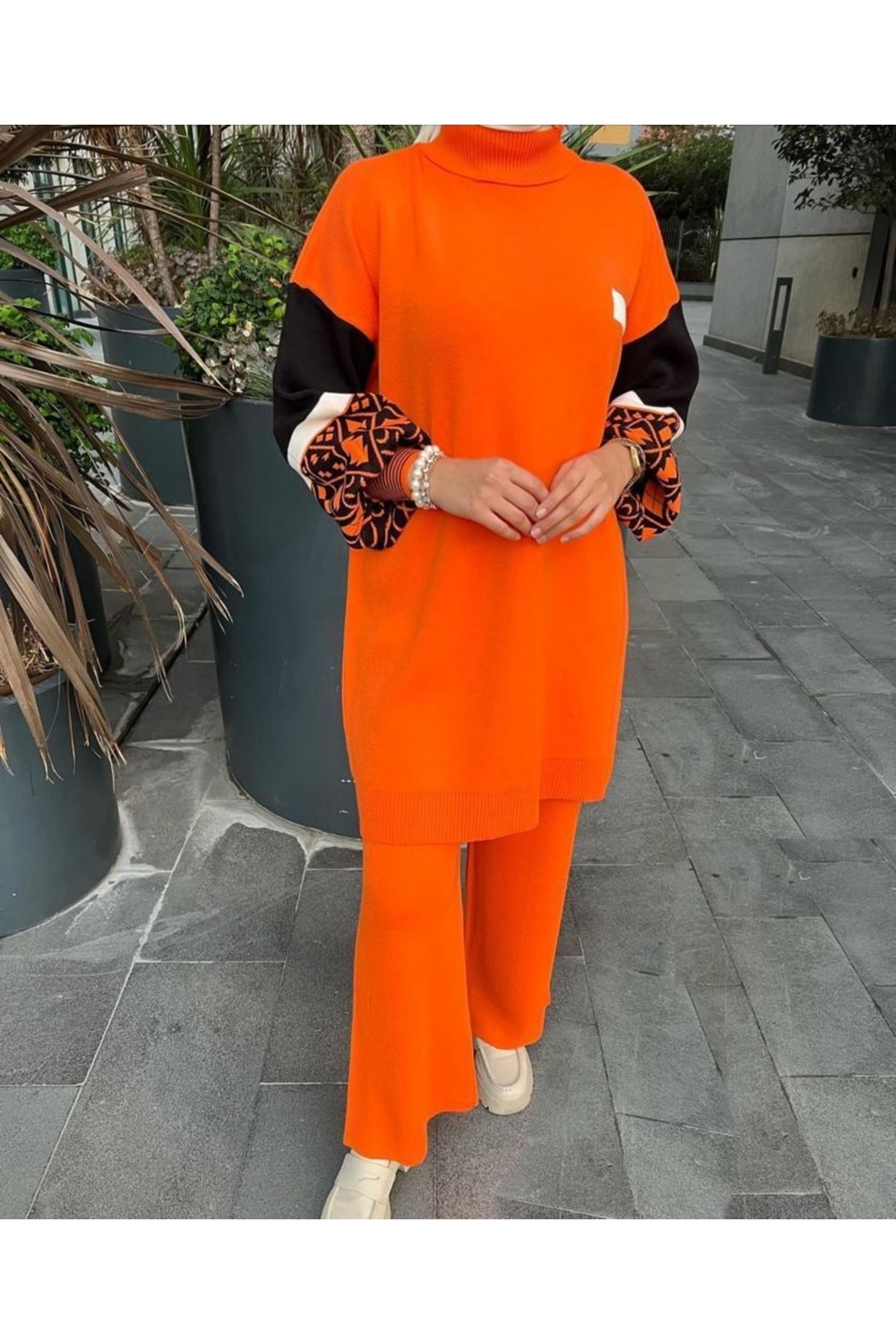 - Kazaklı pantolonlu alt-üst takım kombini ile pratik ve uyumlu bir görünüm elde edersiniz.