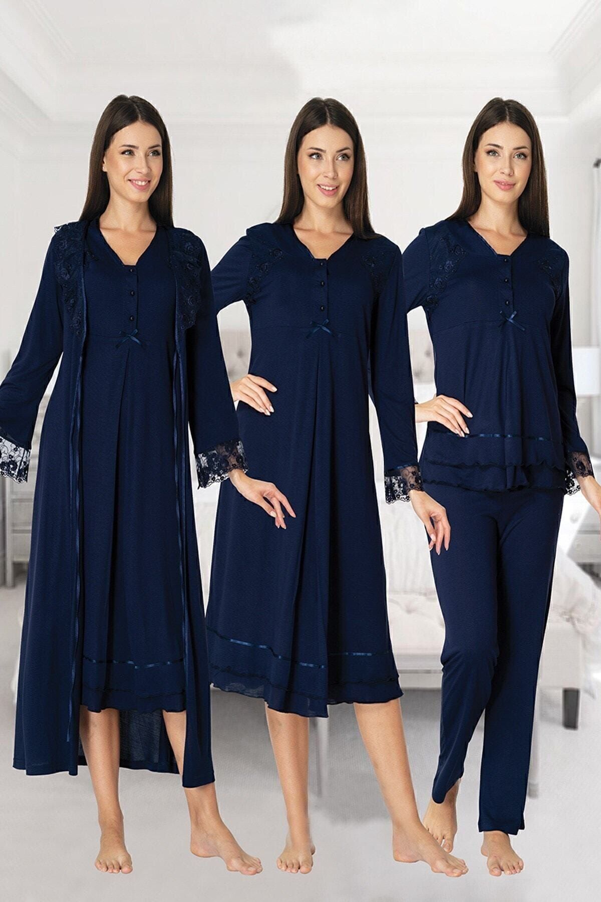 Gecelik, pijama takımı ve sabahlığın modern ve sade tasarımı ile zarif bir görünüm elde edersiniz.
