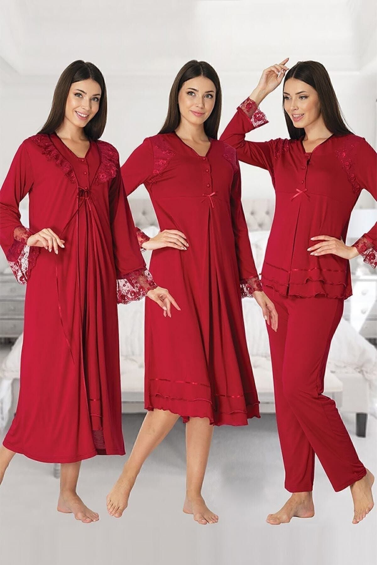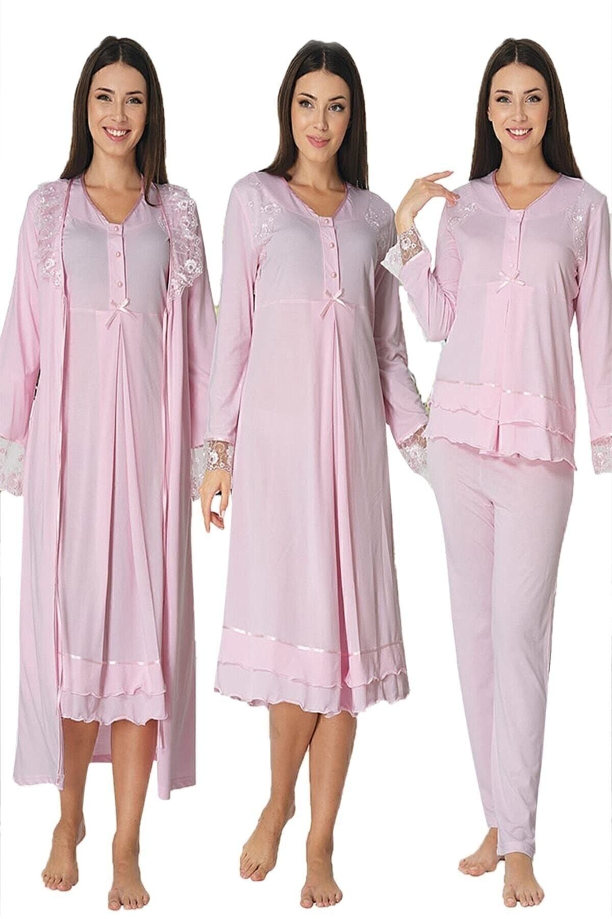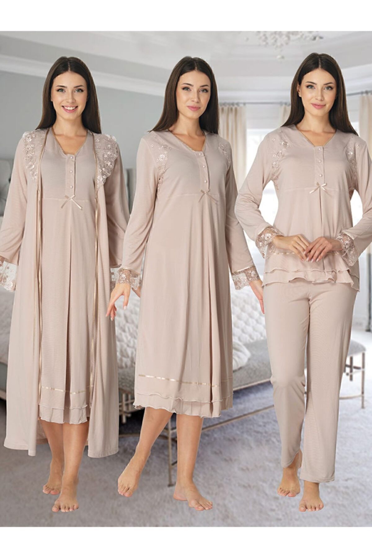 Alt-üst pijama, gecelik ve sabahlık olmak üzere 4 parçadan oluşur.