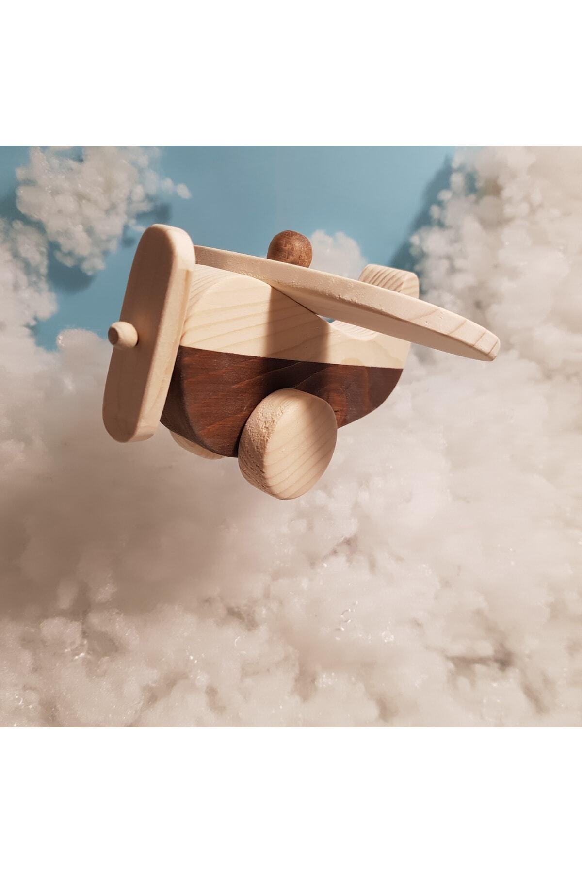 El yapımı ahşap oyuncak uçak, çocukların motor becerilerini geliştirmek için ideal bir seçenektir