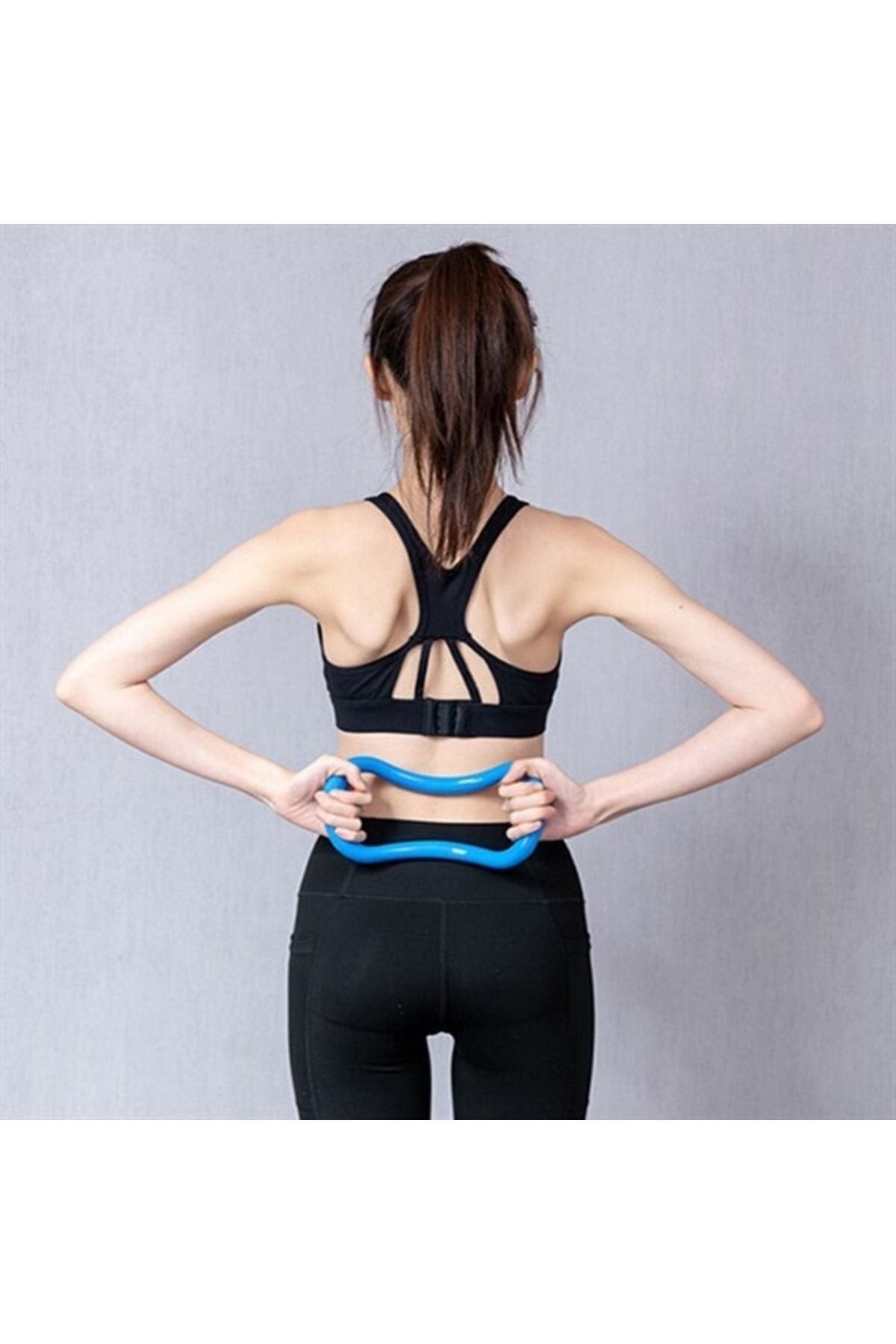 Jimnastik Esneme Hareketleri için Yoga ve Pilates Çemberi Vücudun arkasındaki gerginliği rahatlatmak, masaj yapmak ve yatıştırmak için plates çemberi hareketlerini uygulamaka üzere kullanabileceğiniz aparat.