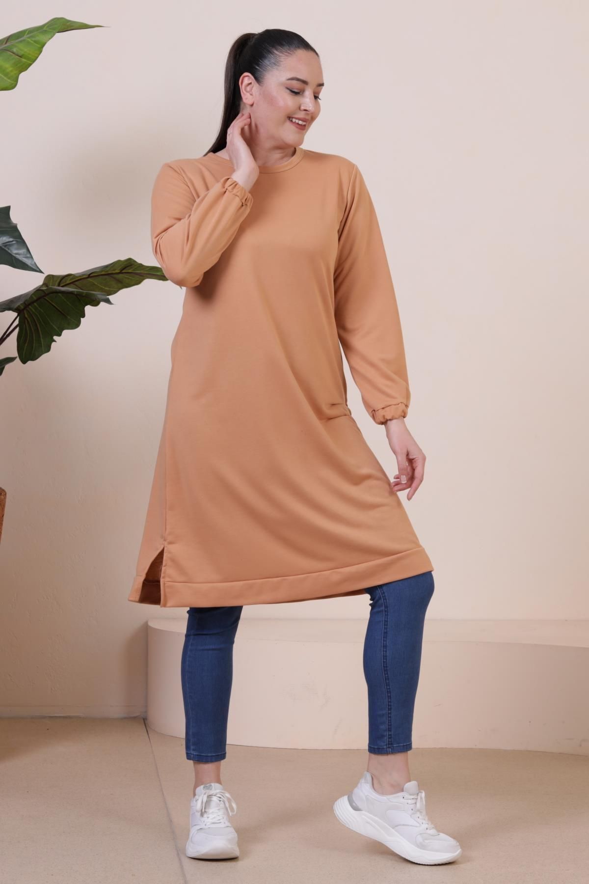 Tesettur Giyim Tunik Buyuk Beden Kadin İki İplik Modelimiz İndigo, Kahverengi, Lacivert, Bordo, Mint Yeşili, Taba, Siyah, Turuncu, Yeşil ve Mürdüm Renktedir.