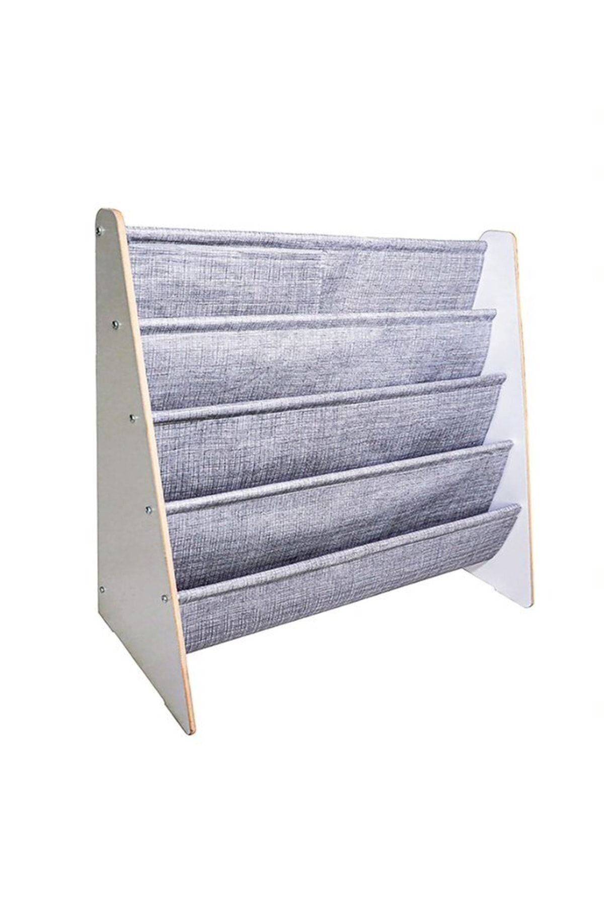 Montessori Ana Sınıfı Kreş Okul Çocuk Odası Kitaplığı Ahşap Kumaş Kitaplık Yıkanabilir Kumaş Gri