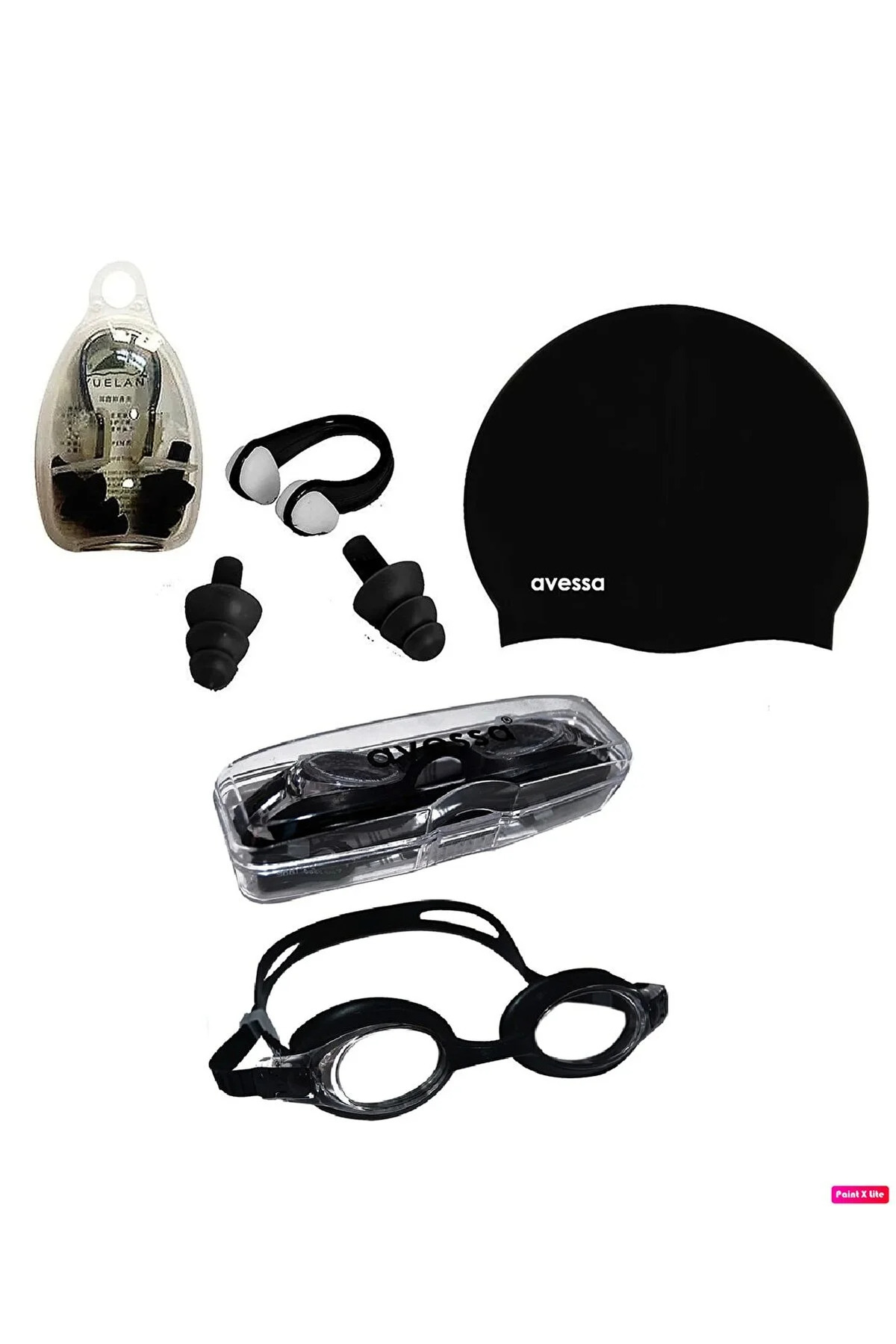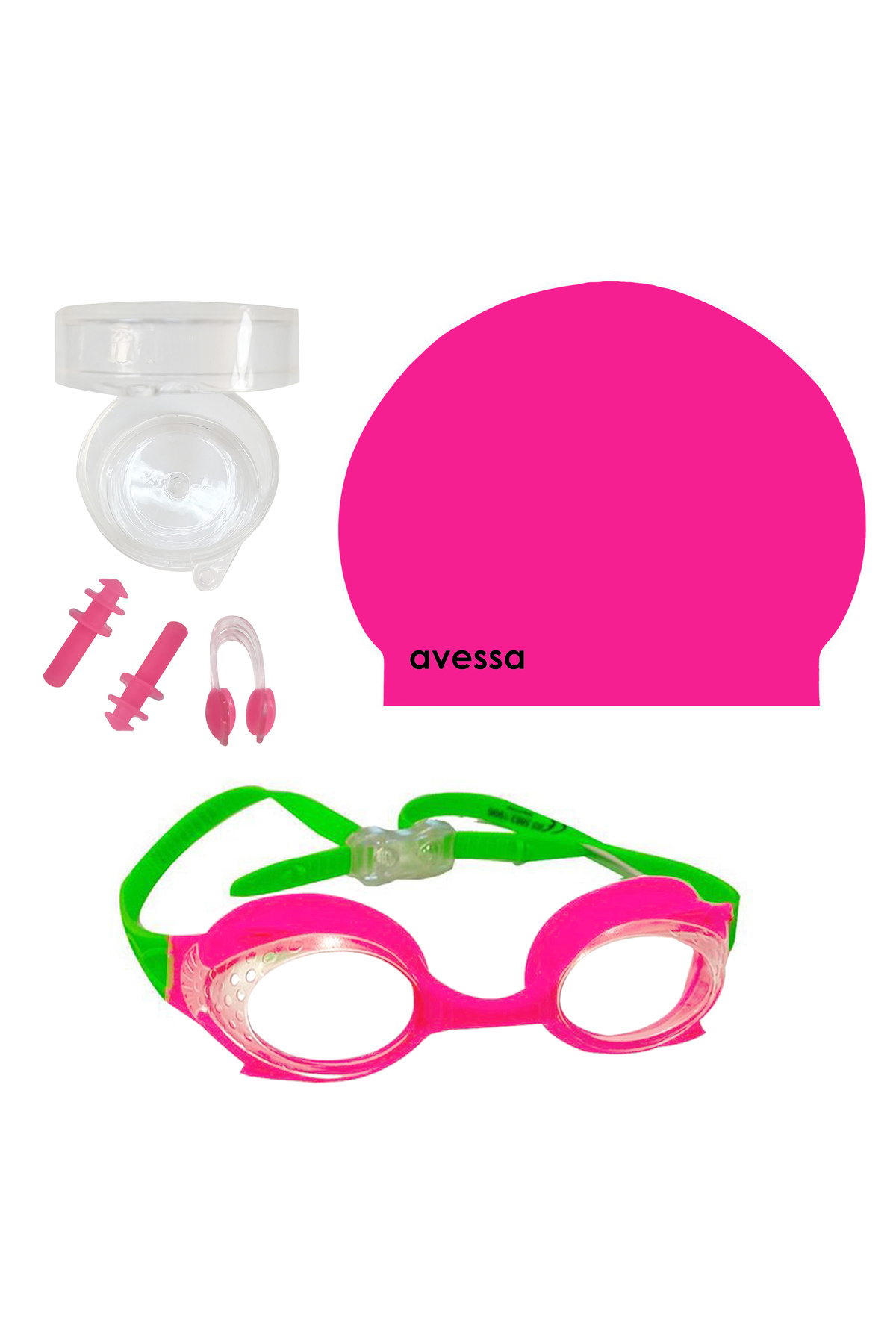 Avessa 3'lü Çocuk Gözlüğü Havuz Seti Yüzücü Deniz Gözlüğü Havuz Gözlüğü + Bone + Kulak Burun Tıkacı