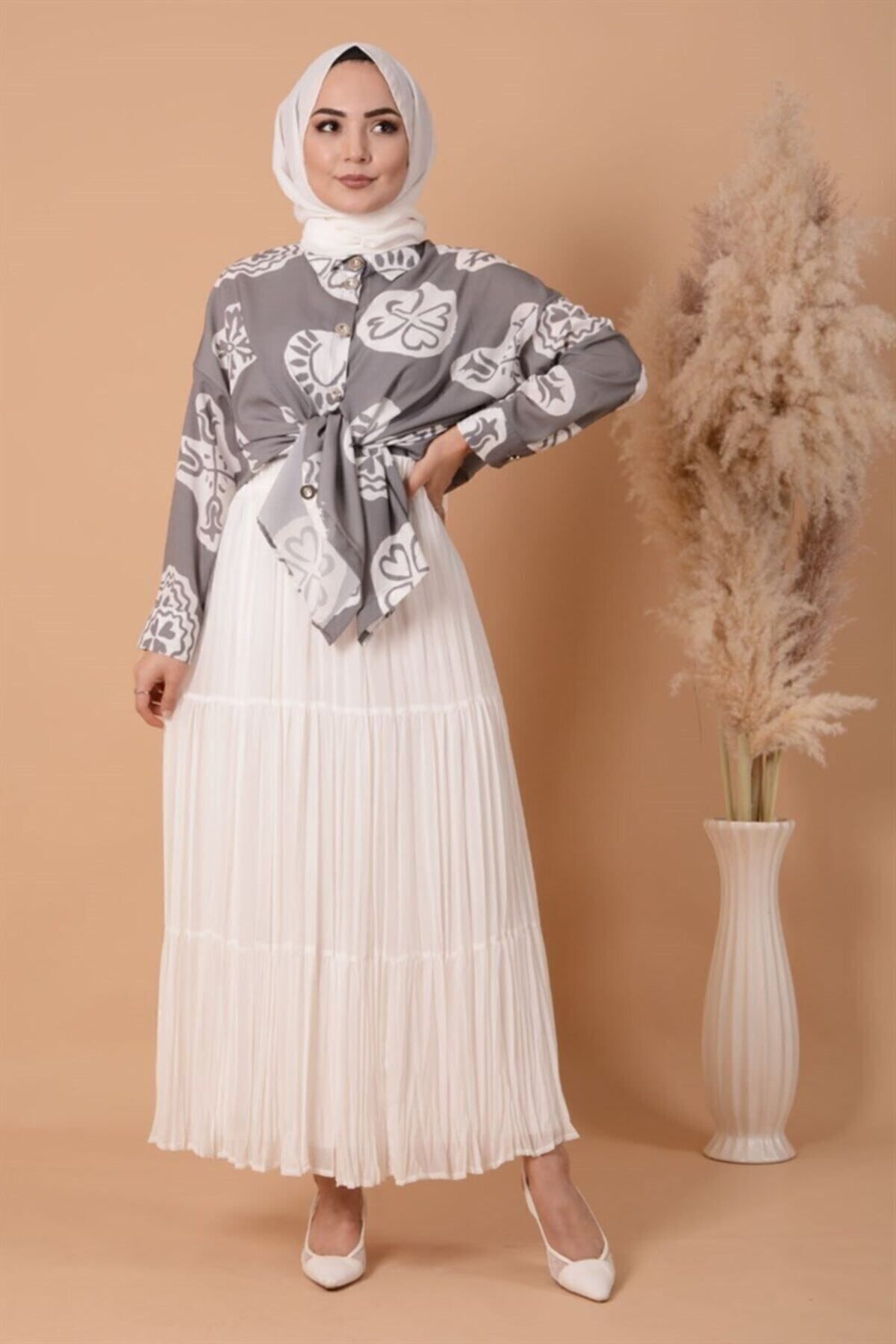 - Piliseli tasarımı ile feminen çizgileri ön plana çıkarırken, tesettür giyim standartlarına uygunluk gösterir