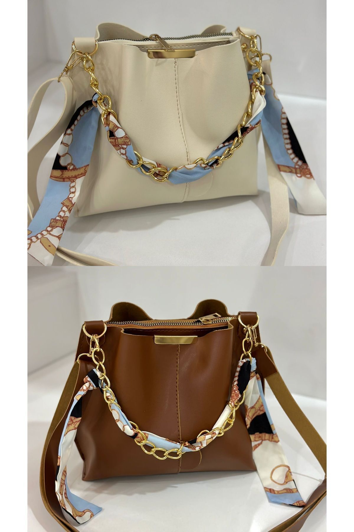 Kadın Fularlı Zincir Aksesuarlı Yumuşak Deri 3 Bölmeli EL Ve Omuz Çantası