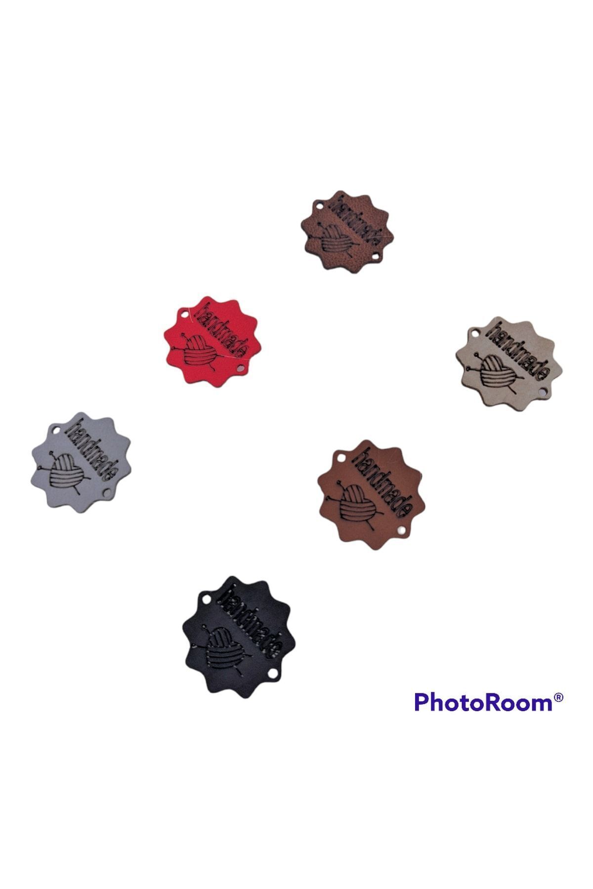 Hanmdade yazılı deri etiketlerimiz örgü ve el yapımı ürünlere kolayca monte edilebilir.