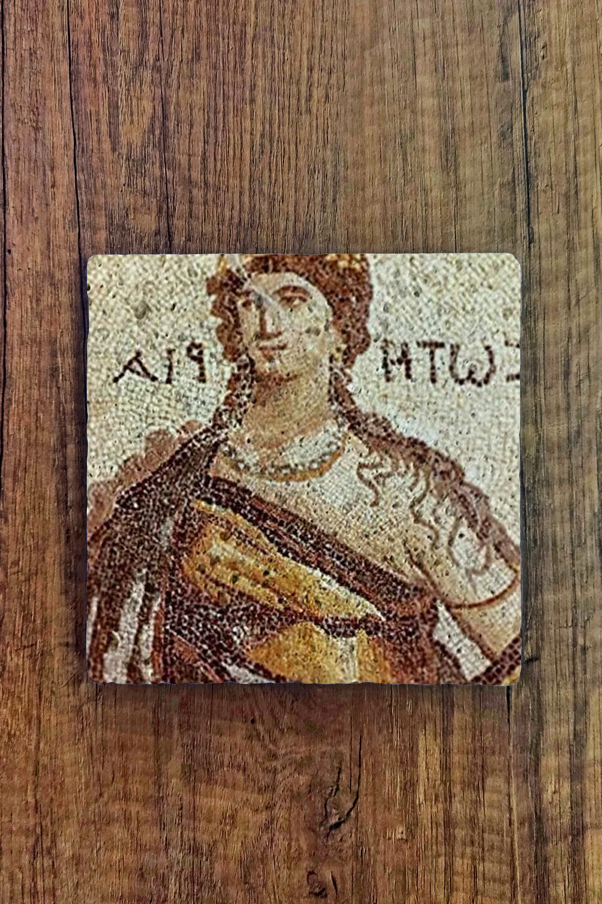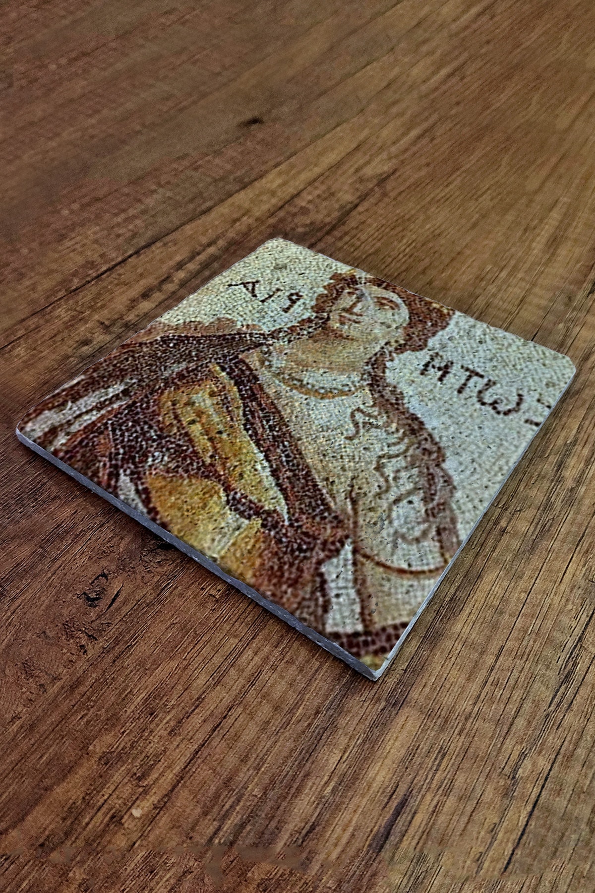 Doğal Taş Nihale 15x15cm Zeugma Mozaik Baskılı Çaydanlık Altlığı-tencere Tava Altlığı