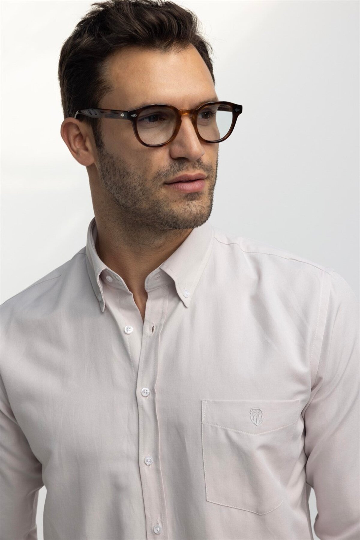 Erkek Regular Fit Klasik Kesim Oxford Doku Yaka Düğmeli Cepli Nakışlı Gömlek