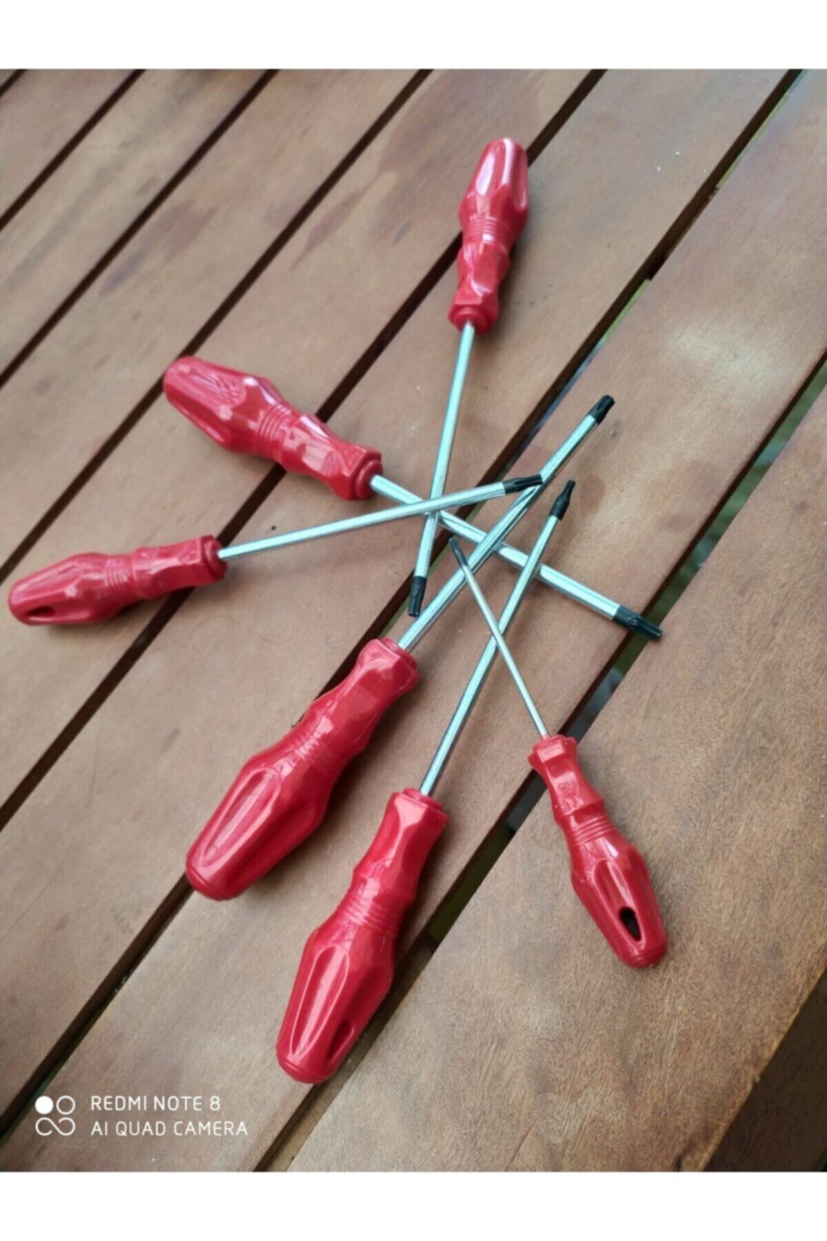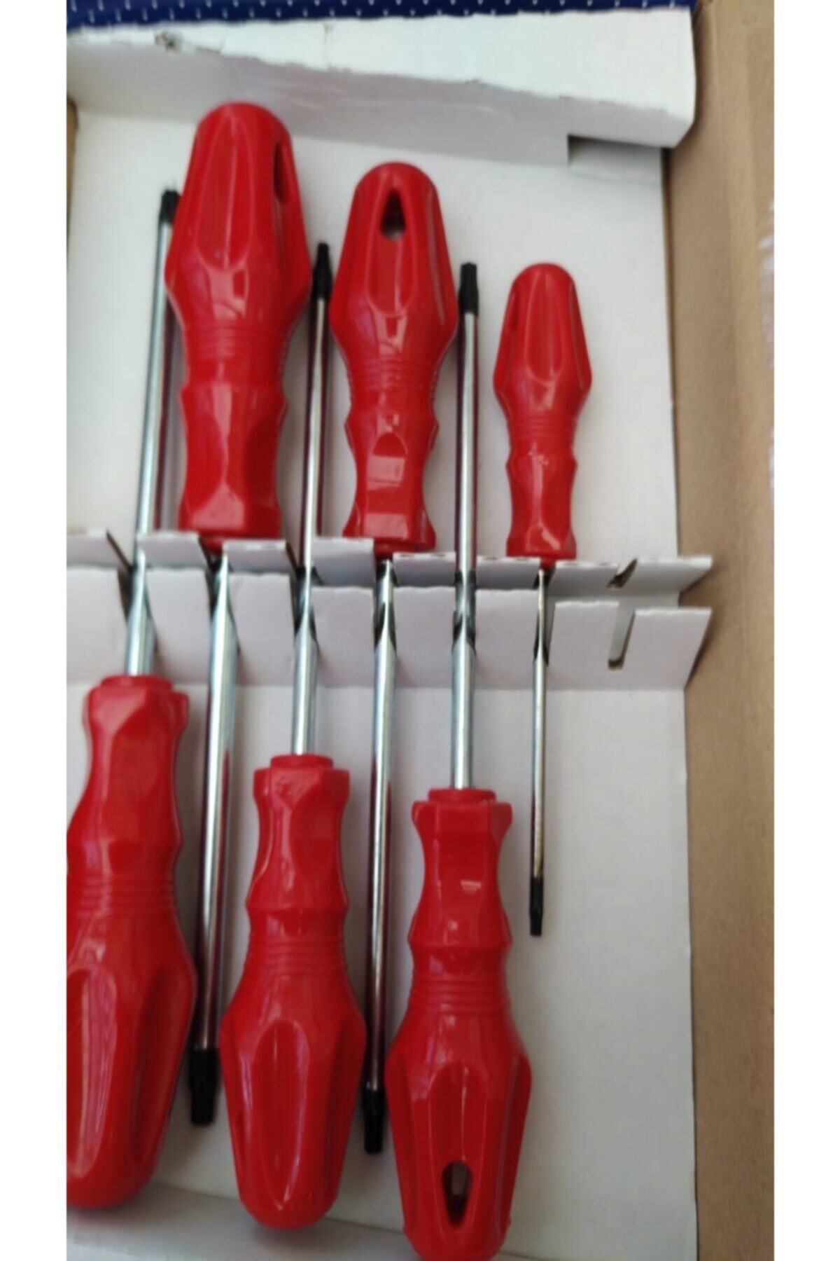Çeşitli tornavida uçları ile donatılmış, T10, T15, T20, T25, T30 ve T40 olmak üzere 6 farklı boyutlarda manyetik tornavida seti