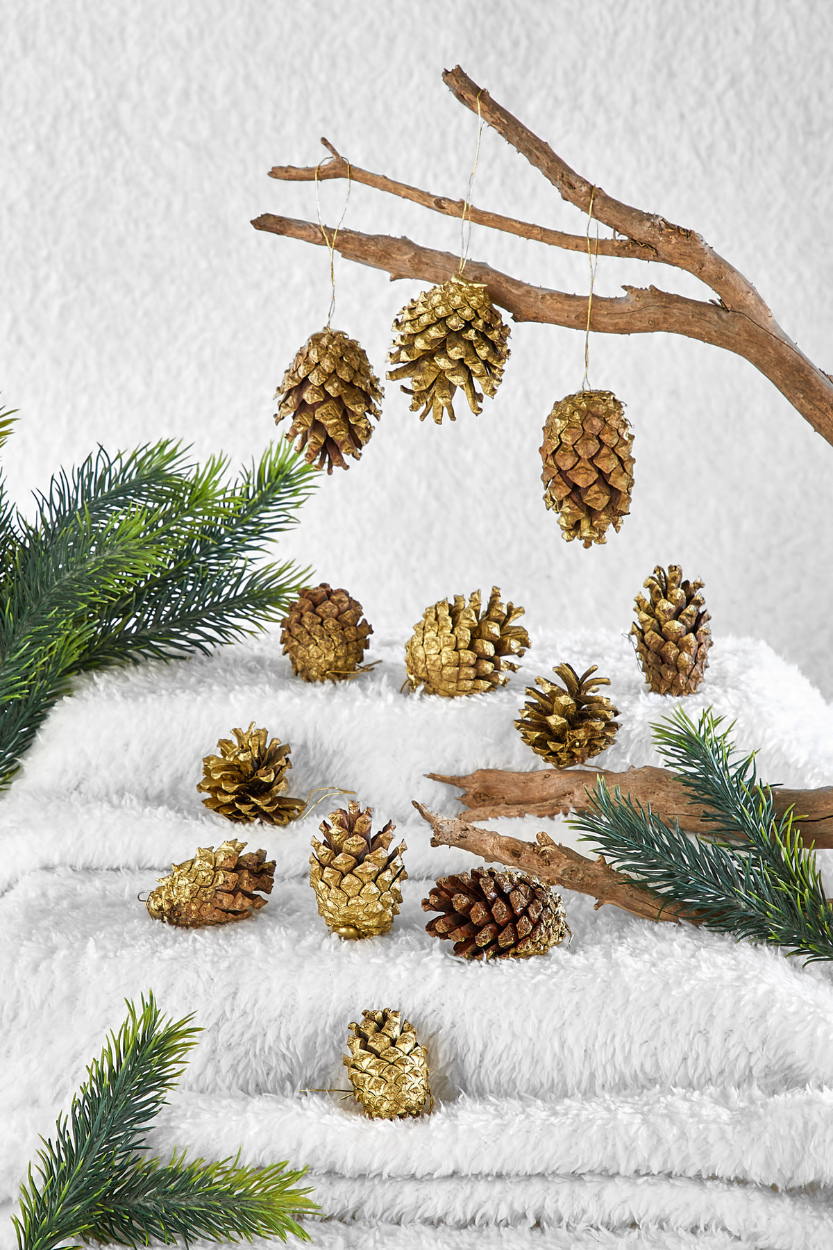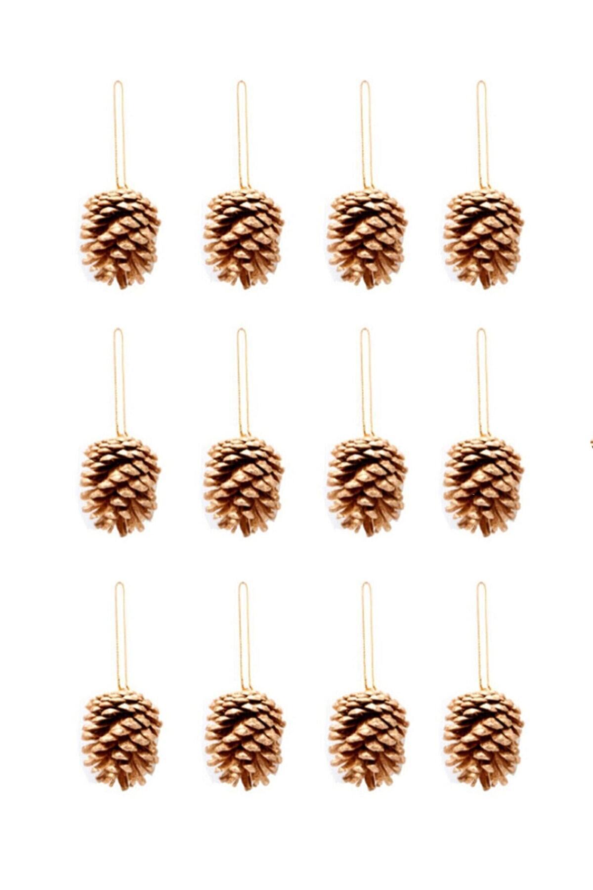 Yılbaşı Çam Ağacı Süsü Kozalak 12li Altın