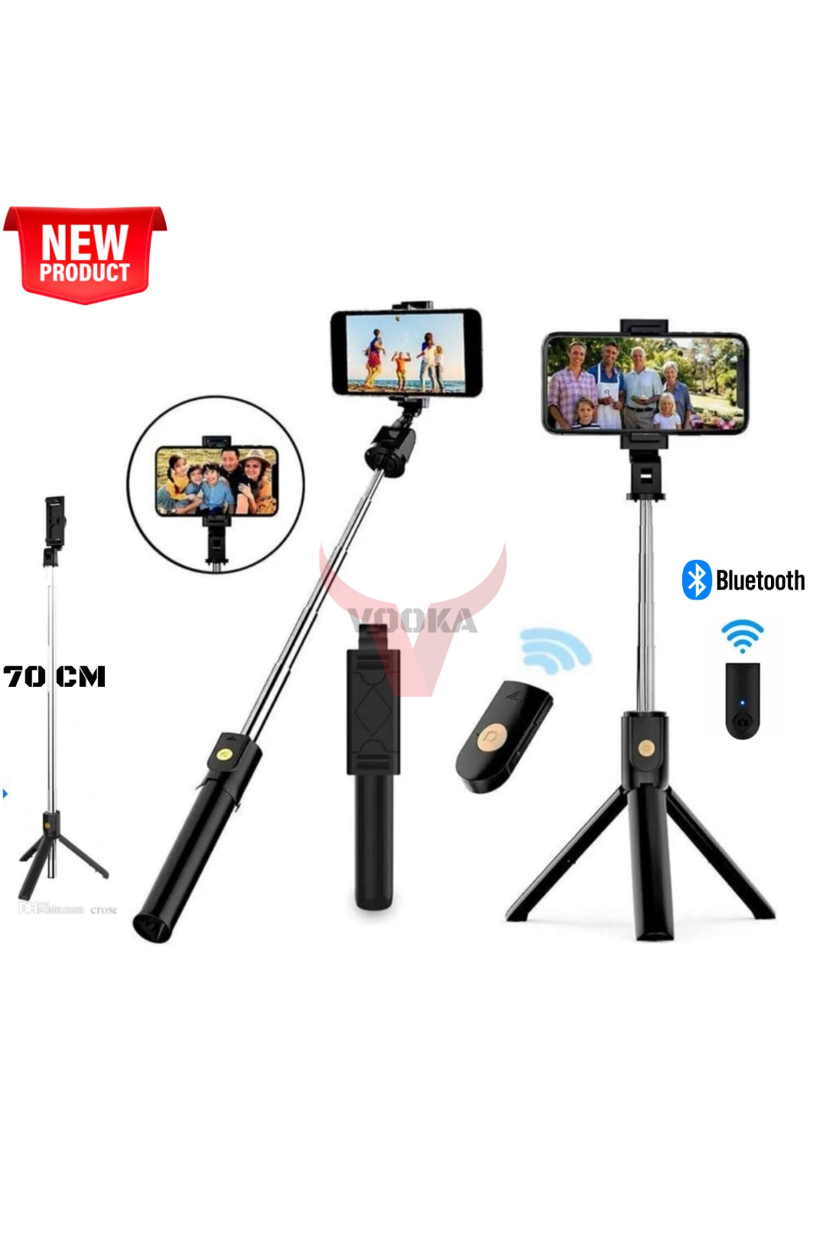 6 cm 155 gram ağırlıgında 70 cm uzunluğunda açılabilir gövde Ios ve android uyumlu video foto çekebilirsiniz Uzaktan kumanda pillidir Yüksek Hızlı Şarj edilmez Kumanda kurulumu : Bluetooth kumandayı açın telefonunuzdan cihaz aratın kumanda cihazını bulunca seçin eşleşme tamamlanınca selfie çubuğunuzu kullanmaya başlayabilirsiniz