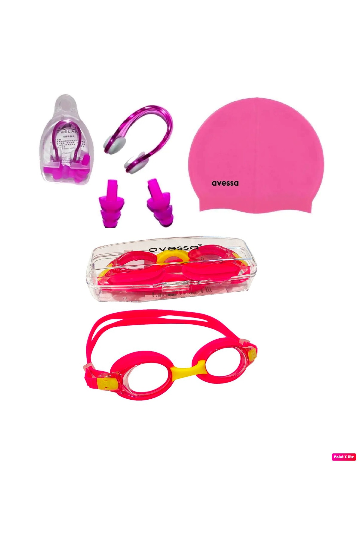 Avessa 3'lü 2670 Çocuk Gözlüğü Havuz Seti Yüzücü Gözlüğü Havuz Gözlüğü + Bone + Kulak Burun Tıkacı Siyah Özel yeni dizayn şeffaf kutuda.