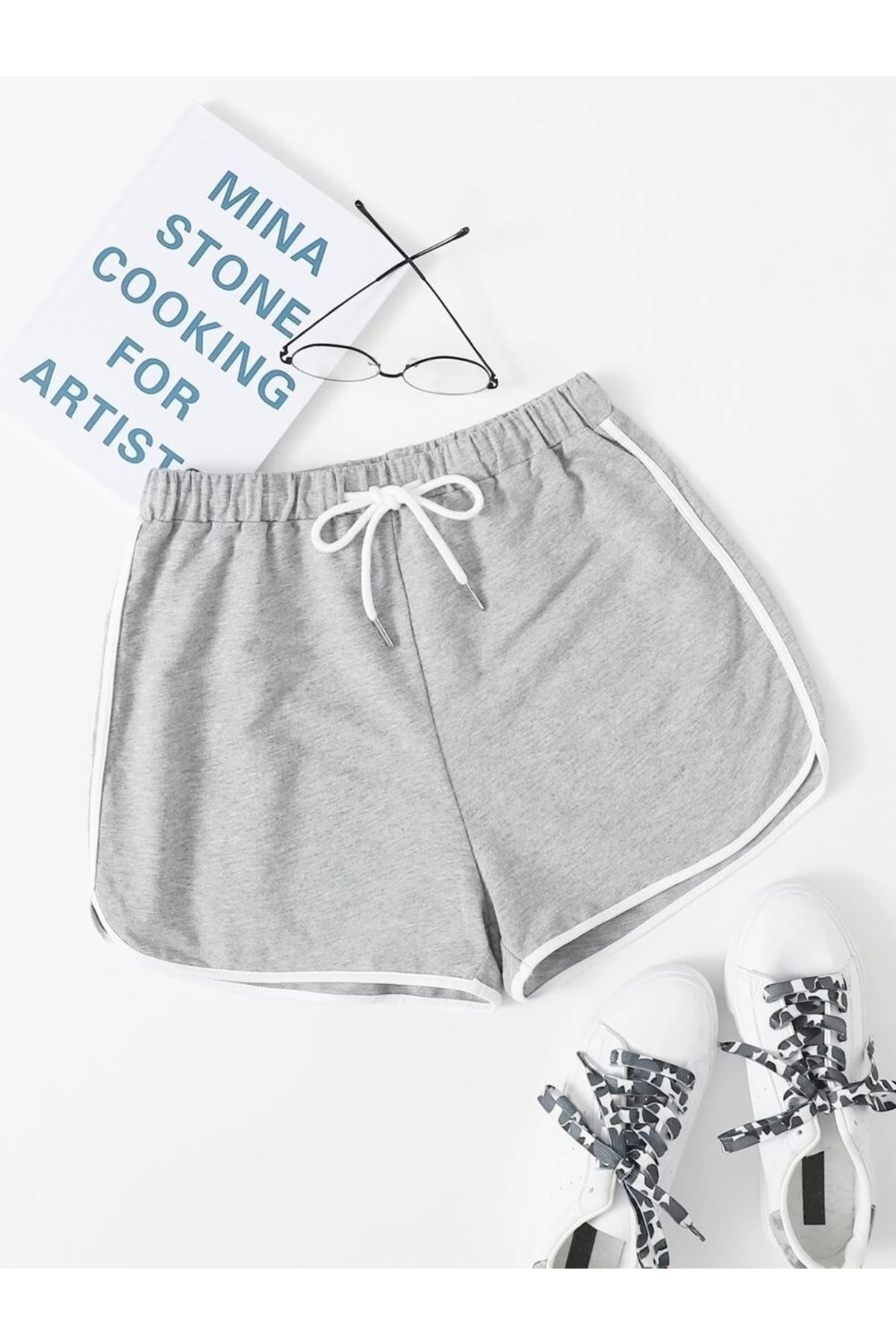 Düz deseni ve gri renkli beyaz yan şerit detaylarıyla sade ve şık bir stil oluşturur