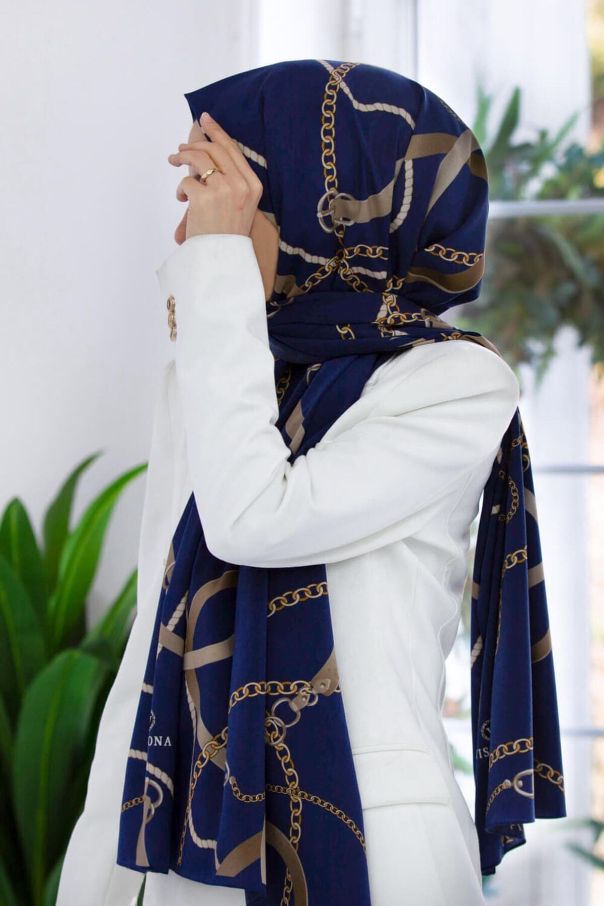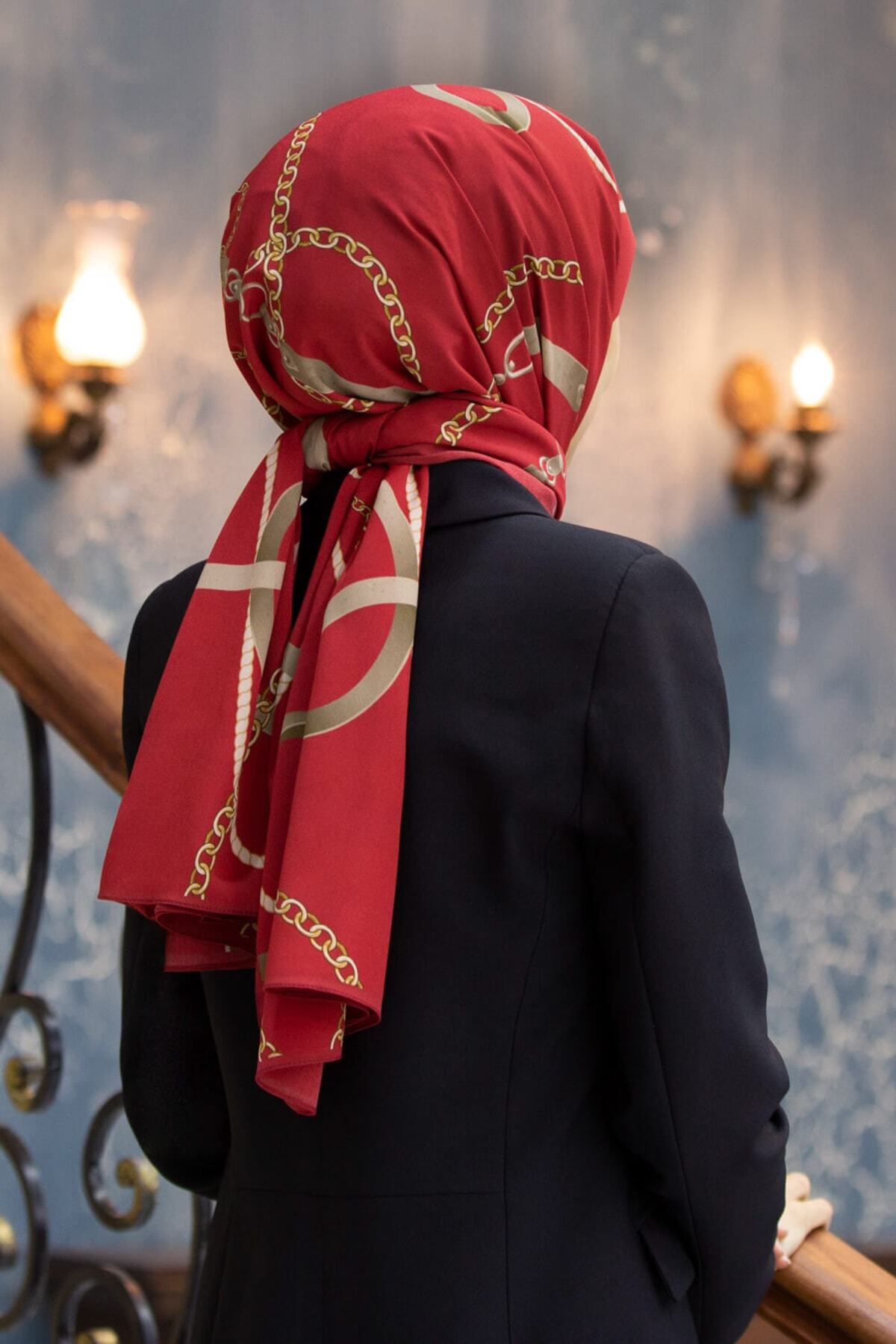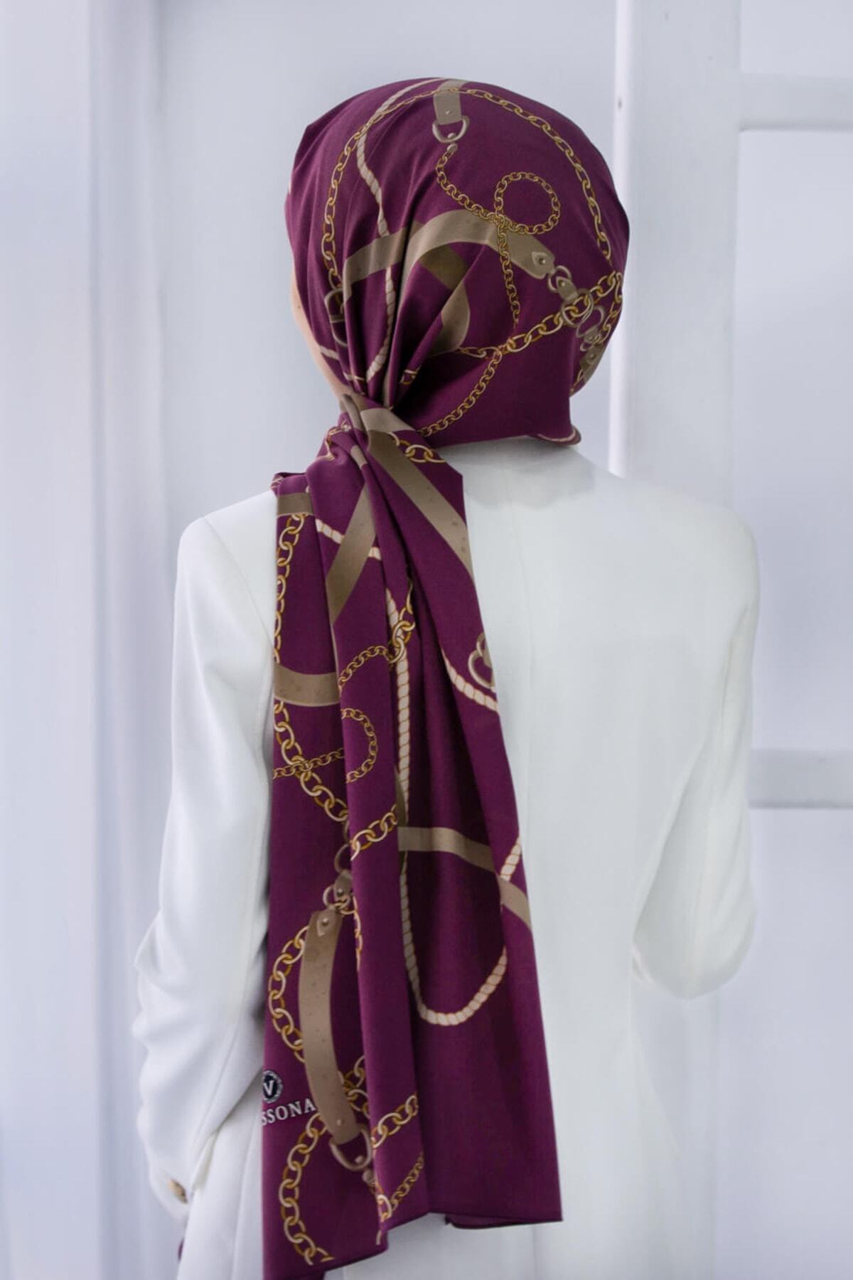 Lüks Medine Ipeği Zincirli Kemer Desenli Siyah Renkli 75x195 Kırışmaz Şal Moss Krep Dikiş Tipi Italy
