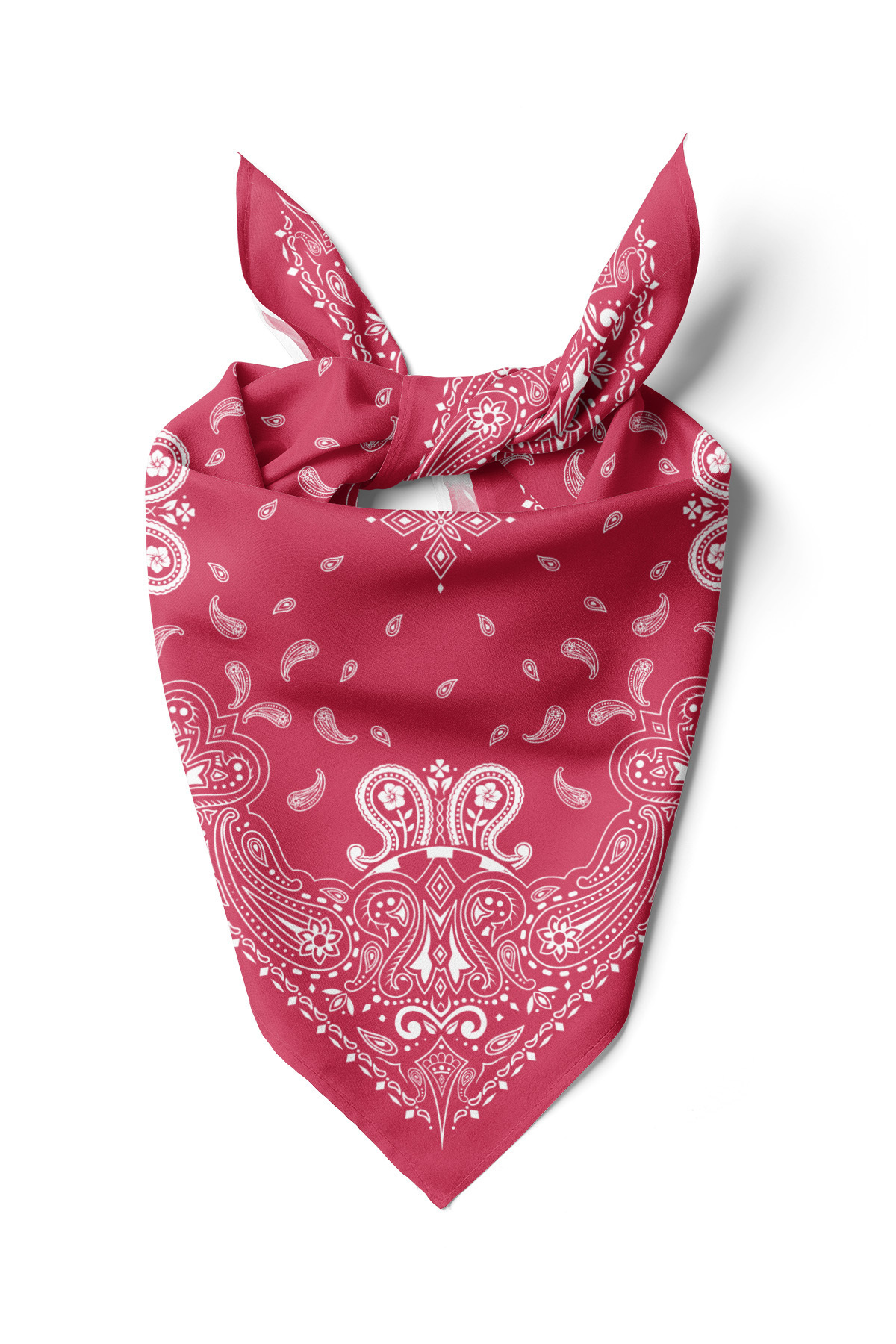 Çiçek desenleriyle süslenmiş, göz alıcı bir görünüm sunan etnik desenli kırmızı bandana, stilinizi renklendirir