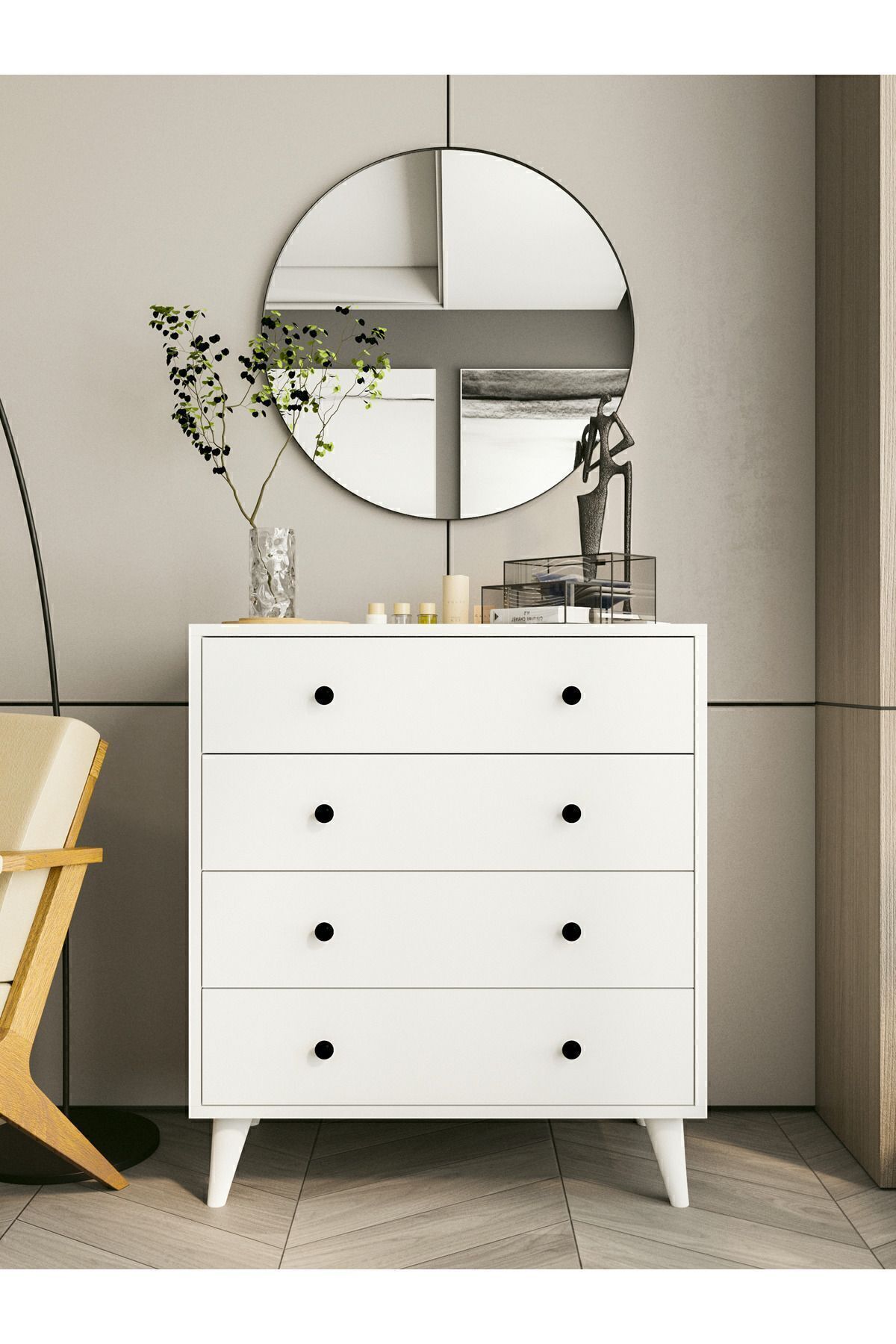 Not: Ürün demonte halde gönderilmektedir. Ürüne sadece şifonyer dahildir. Görsel amaçlı kullanılan objeler dahil değildir. Ürün renkleri ekrana göre değişiklik gösterebilir.