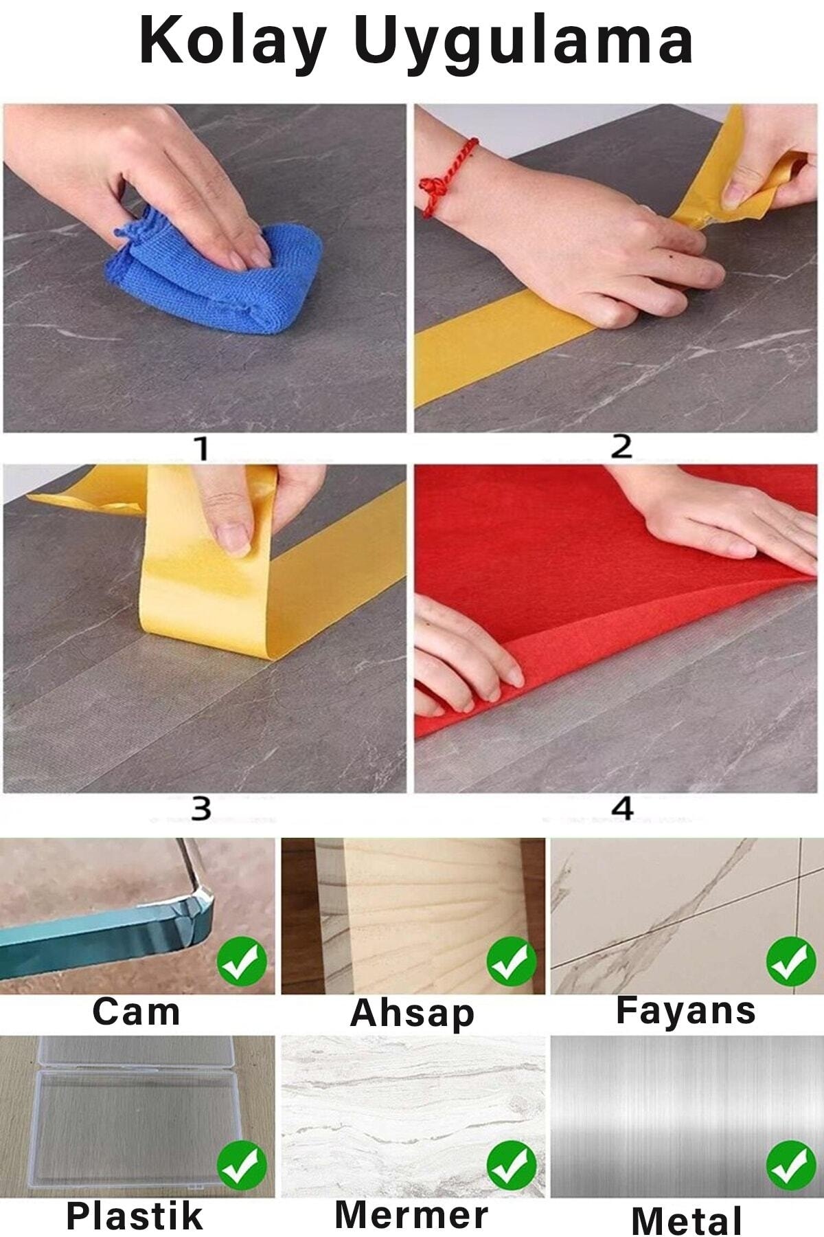 Laminat parke, pvc, fayans,seramik gibi yüzeylere kolayca yapışır.