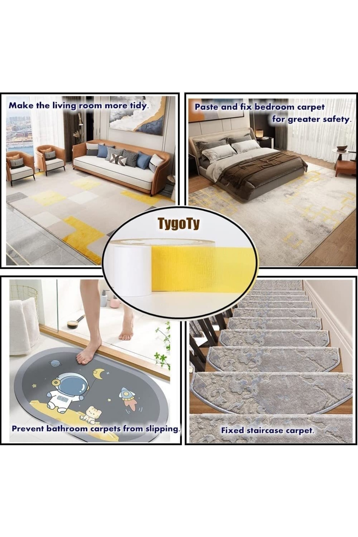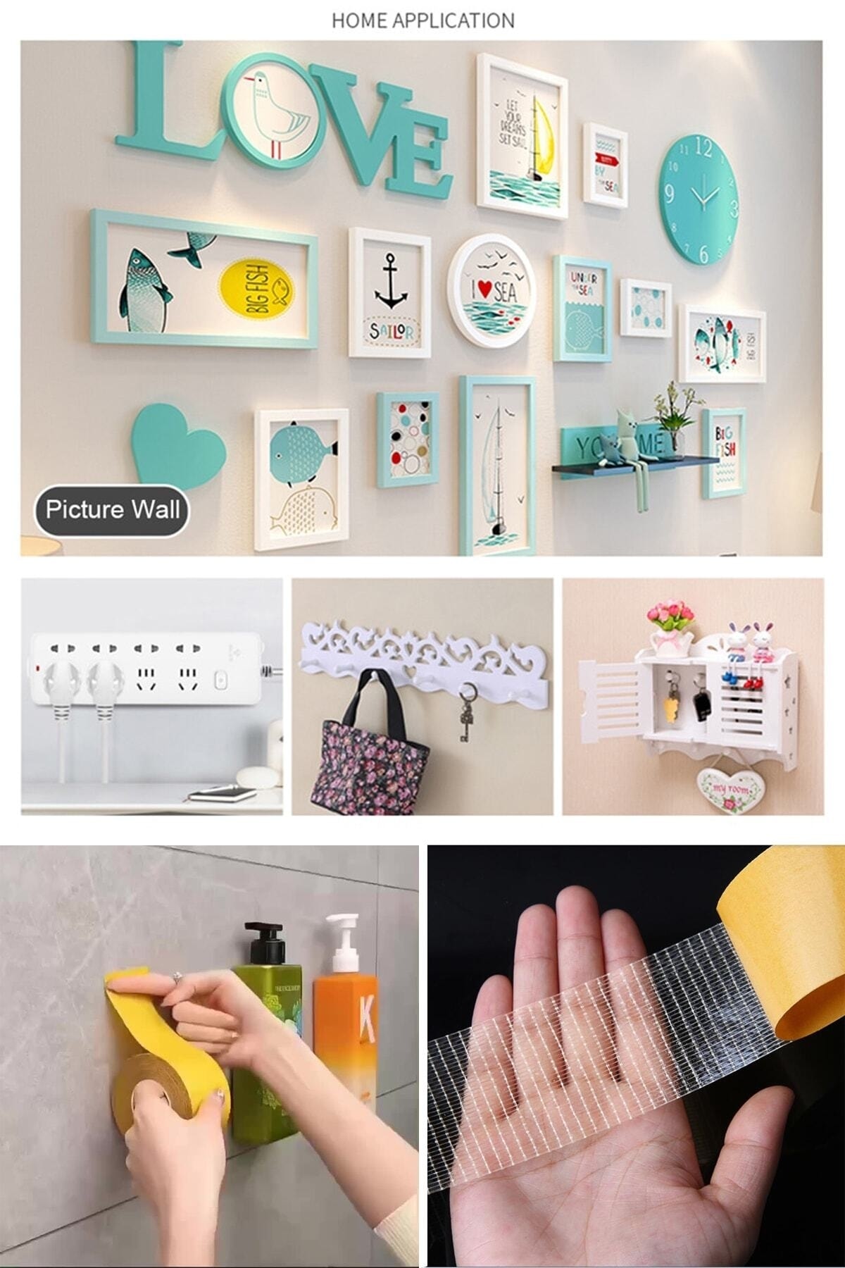 İki taraflı ağır hizmet bandı, halılar, alan kilimleri, yolluklar, buzdolabı, fotoğraf çerçeveleri, isim levhaları, koltuk minderleri, paspaslar, araba paspasları, posterler, DIY projeleri ve çok daha fazlası gibi ev aksesuarlarına uygulanabilir.