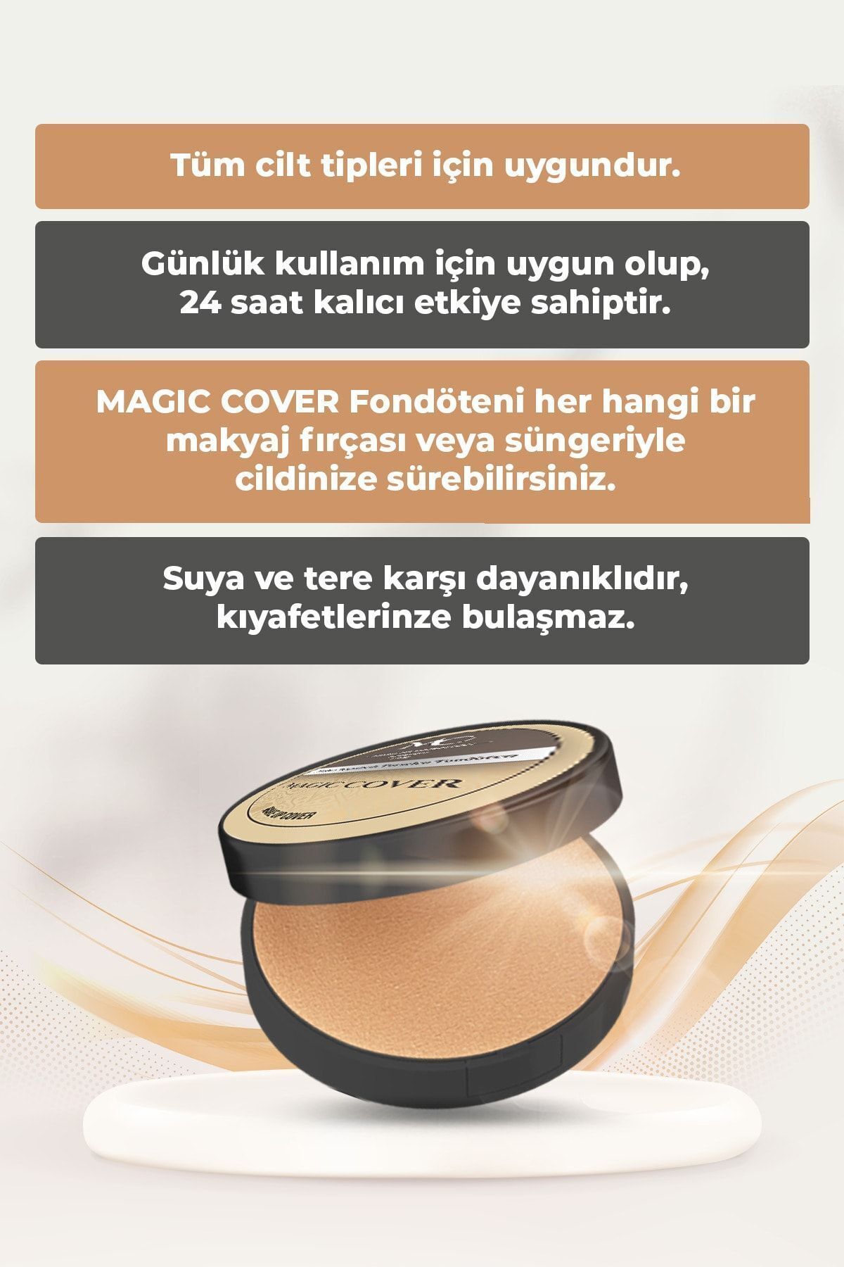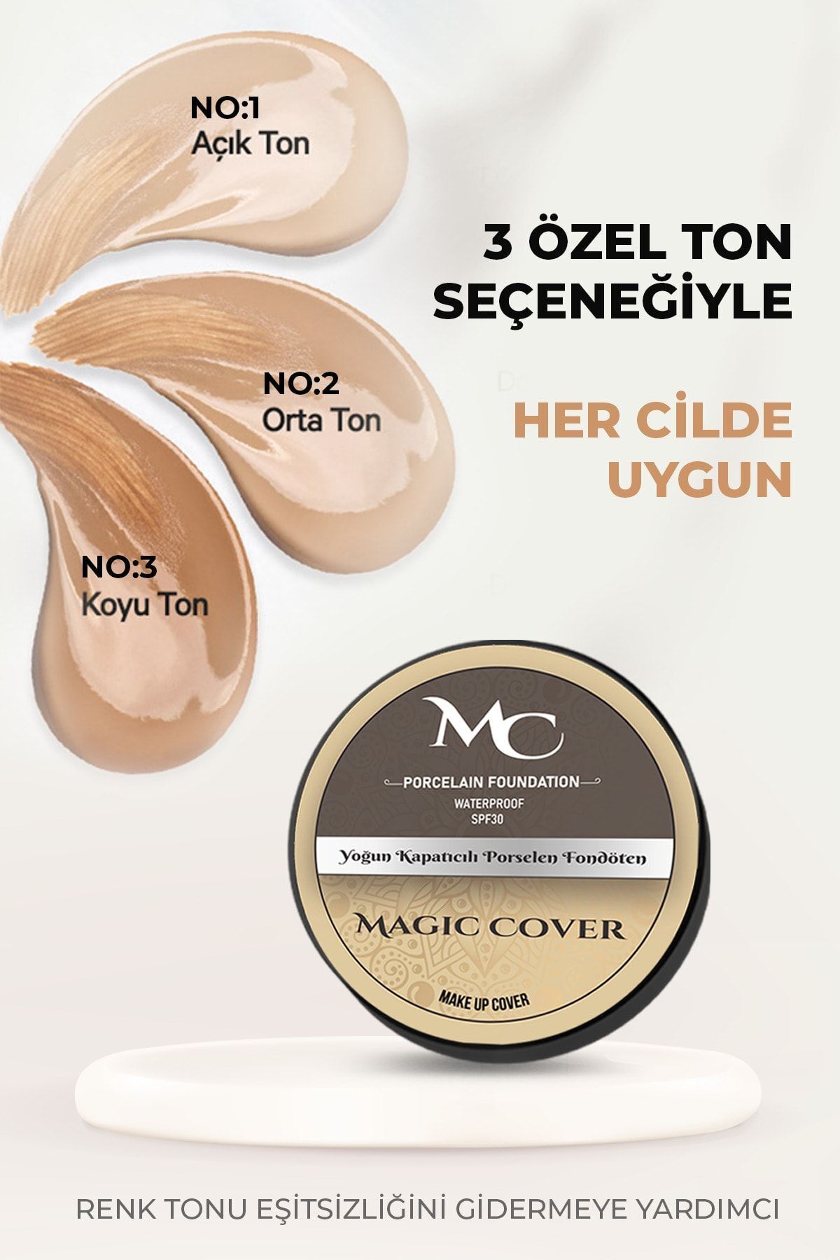Magic Cover Makeup Yoğun Kapatıcı Waterproof Fondöten 3 Farklı Renk Seçenekleriyle, Yüksek Kapatıcılığa Sahip Bir Fondöten Çeşididir.