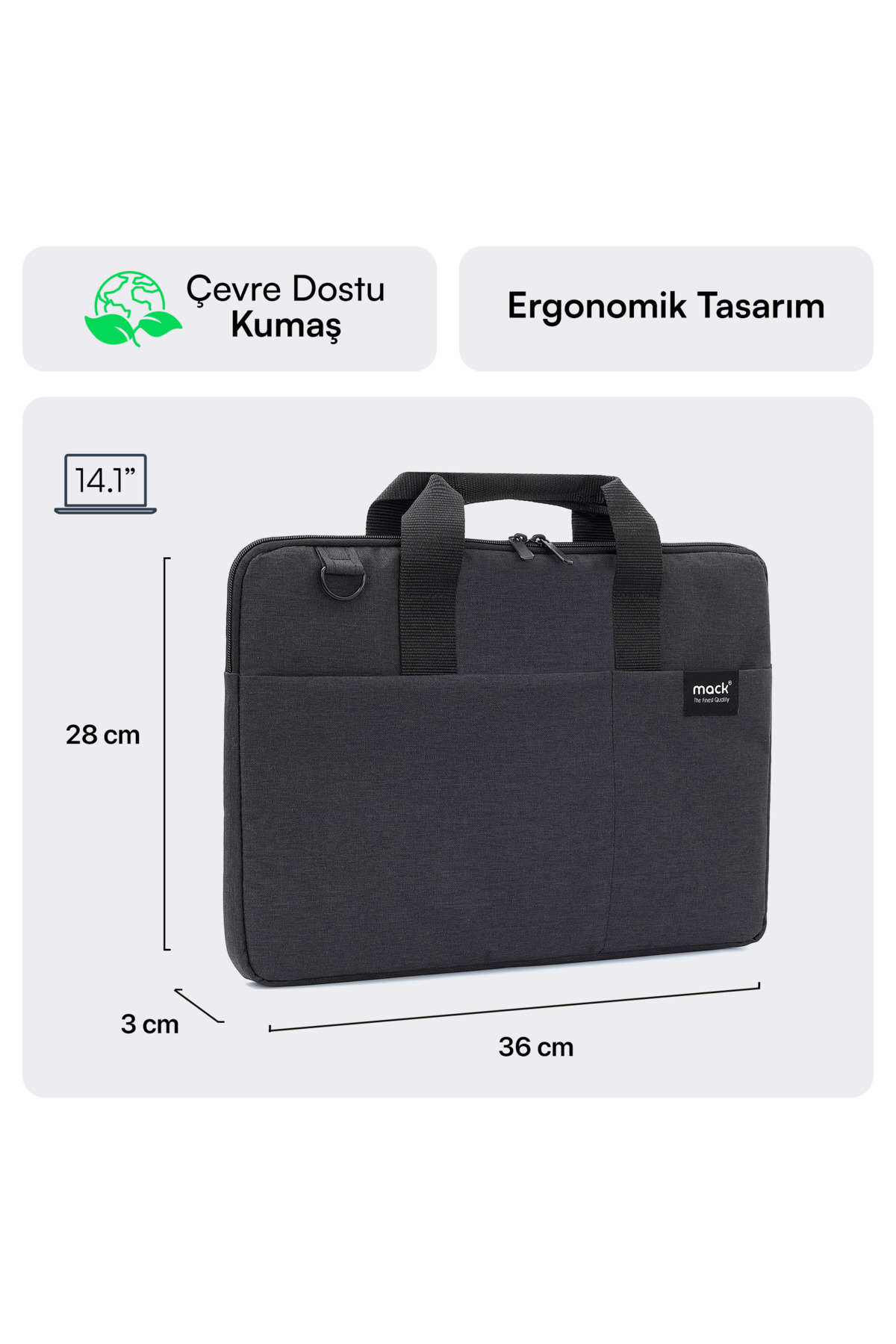 Ergonomik ve şık tasarım Yıpranmaya ve suya karşı dirençli kumaş yapısı Maksimum koruma sağlayan güçlendirilmiş notebook bölümü Kullanım konforu sağlayan ergonomik tutma kolu Ayarlanabilir omuz askıları Ölçüler: 28 x 36 x 2,5 cm Ağırlık: 0,26g Renk: Siyah