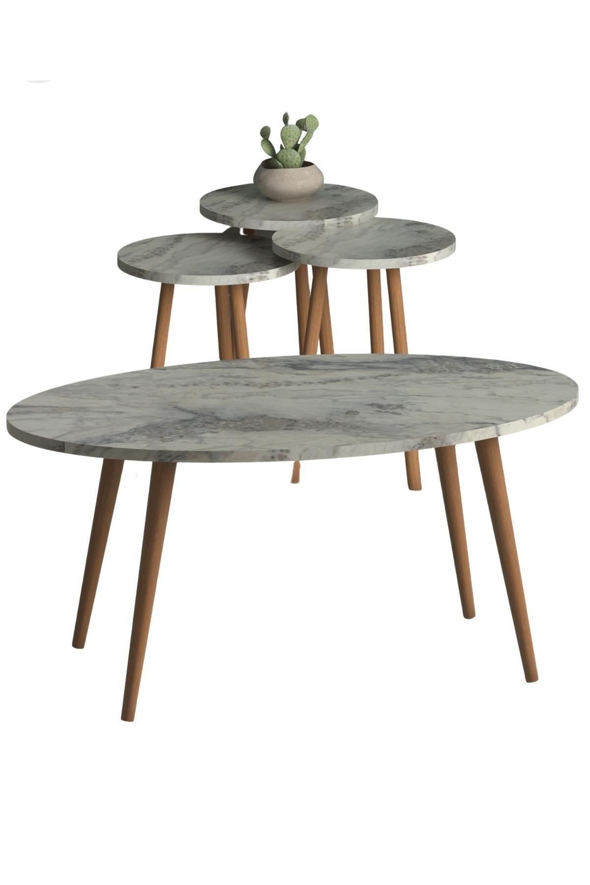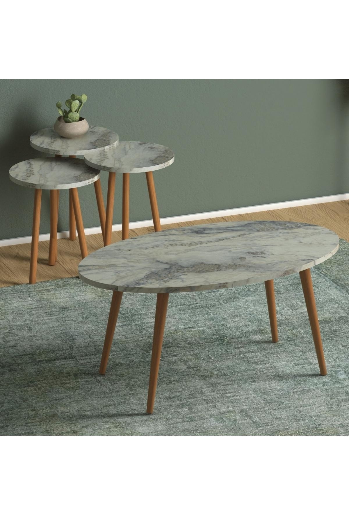 İskandinav stilinin sade ve fonksiyonel tasarım anlayışını yansıtan bu sehpa seti, minimalist dekorasyon severler için idealdir