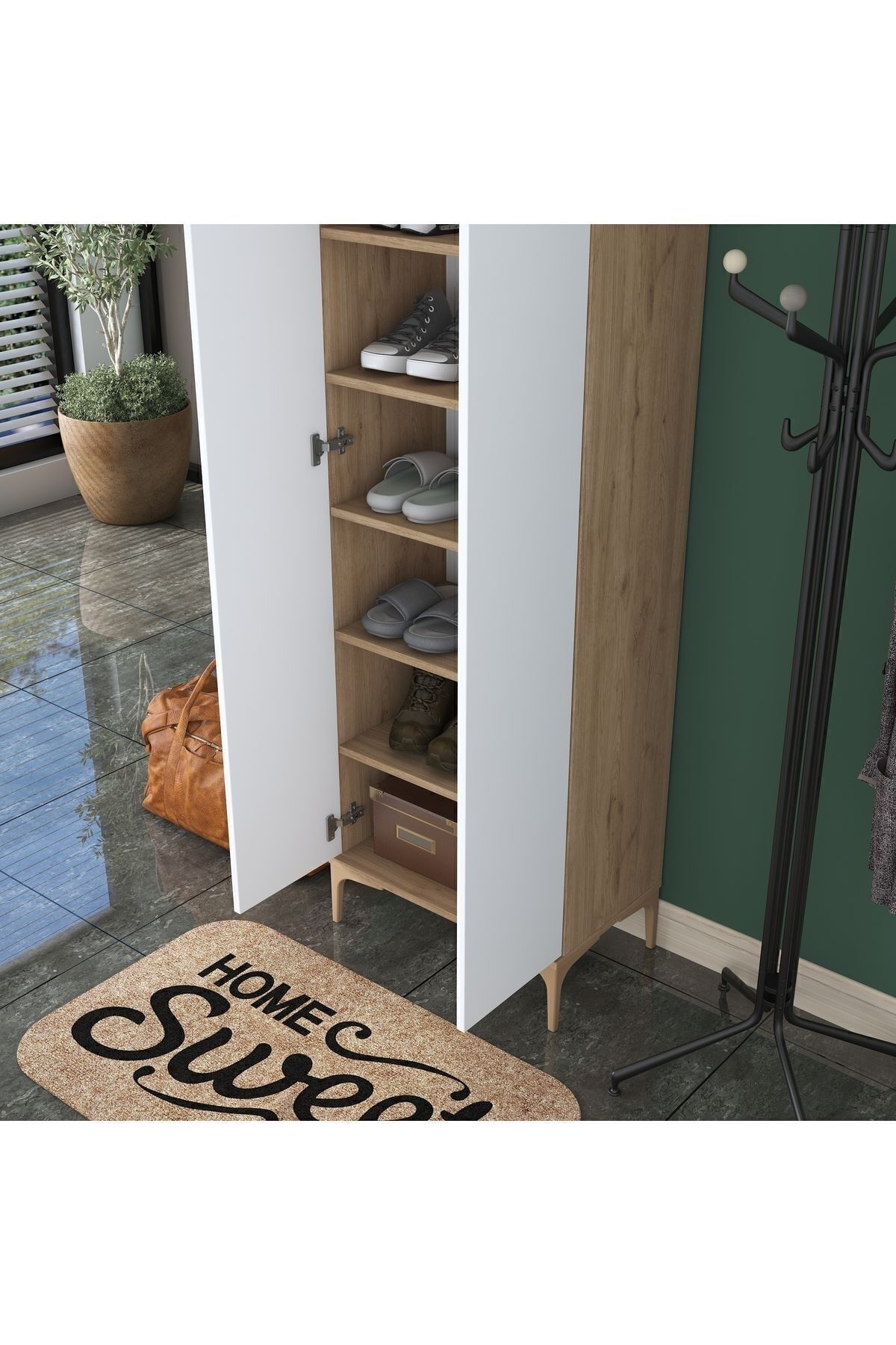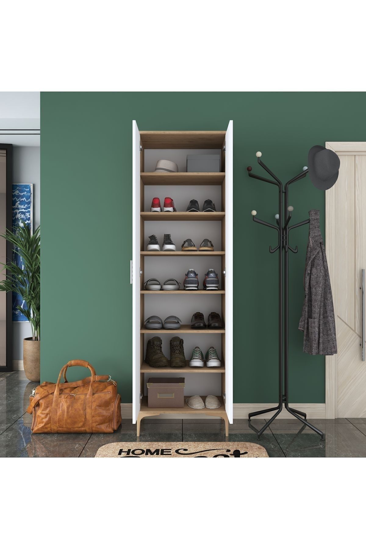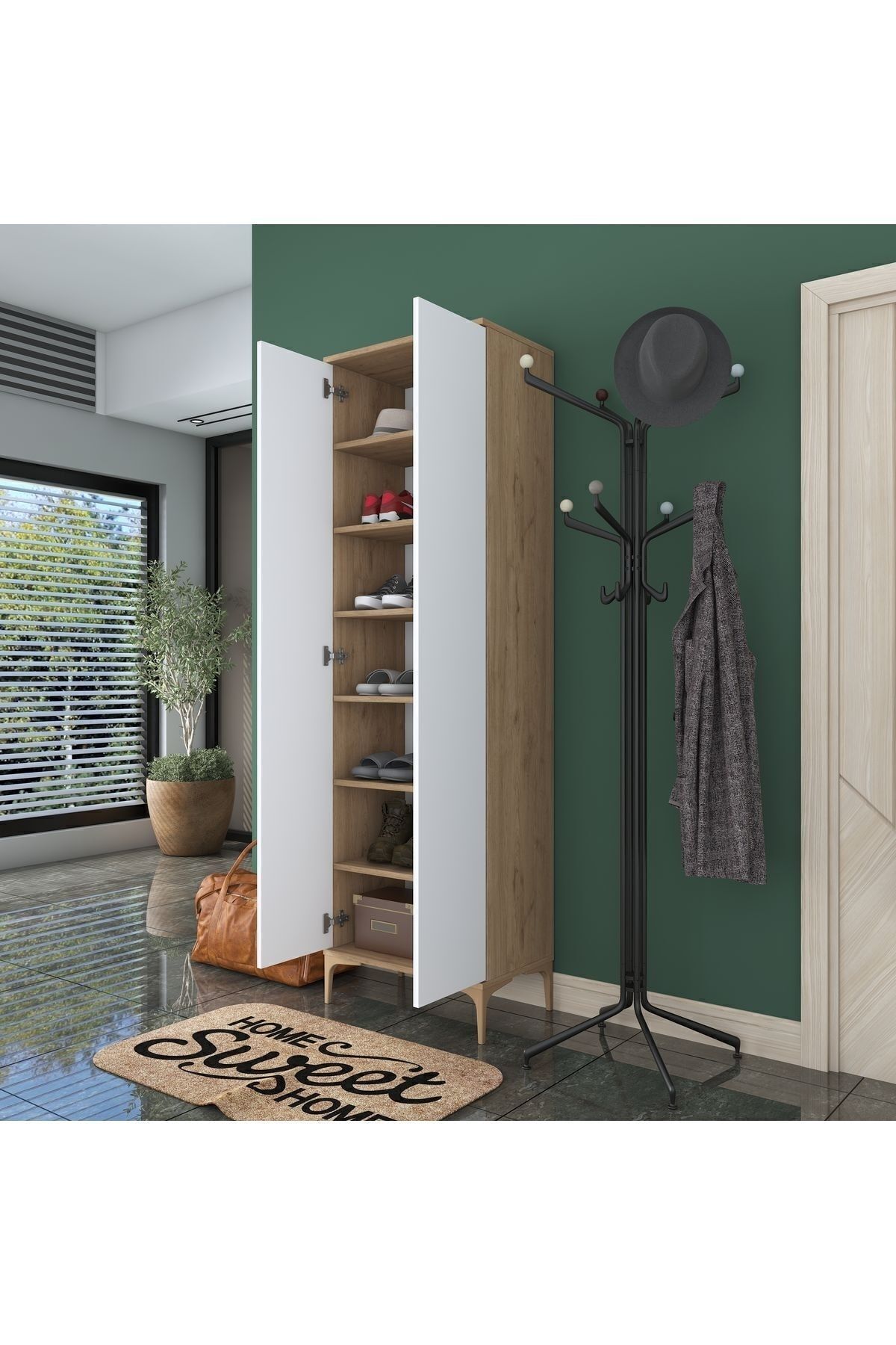 Rani Ea116 Ayakkabılık Portmanto 7 Raflı Çok Amaçlı Dolap Sepet Ceviz - Beyaz