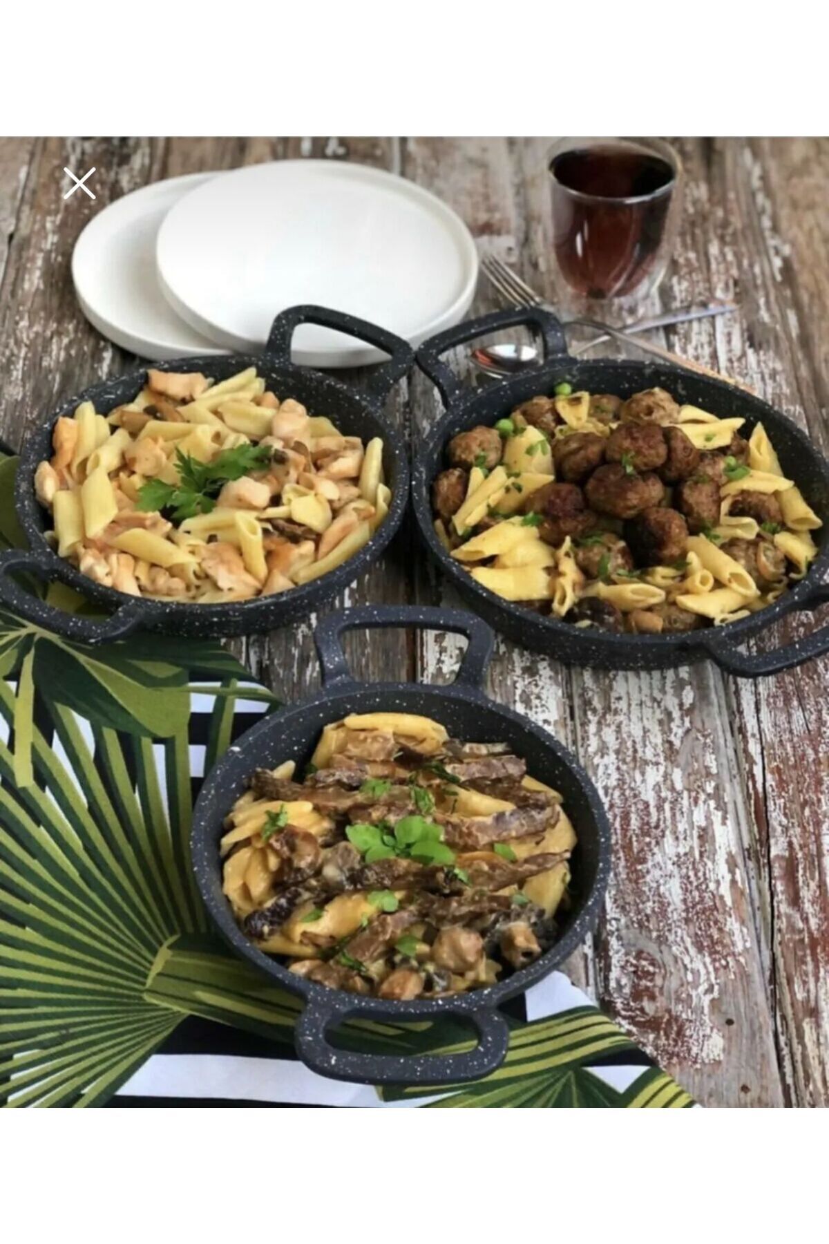 Granit döküm tava seti, kolay temizlenebilir yüzeyi ile mutfakta pratiklik kazandırır