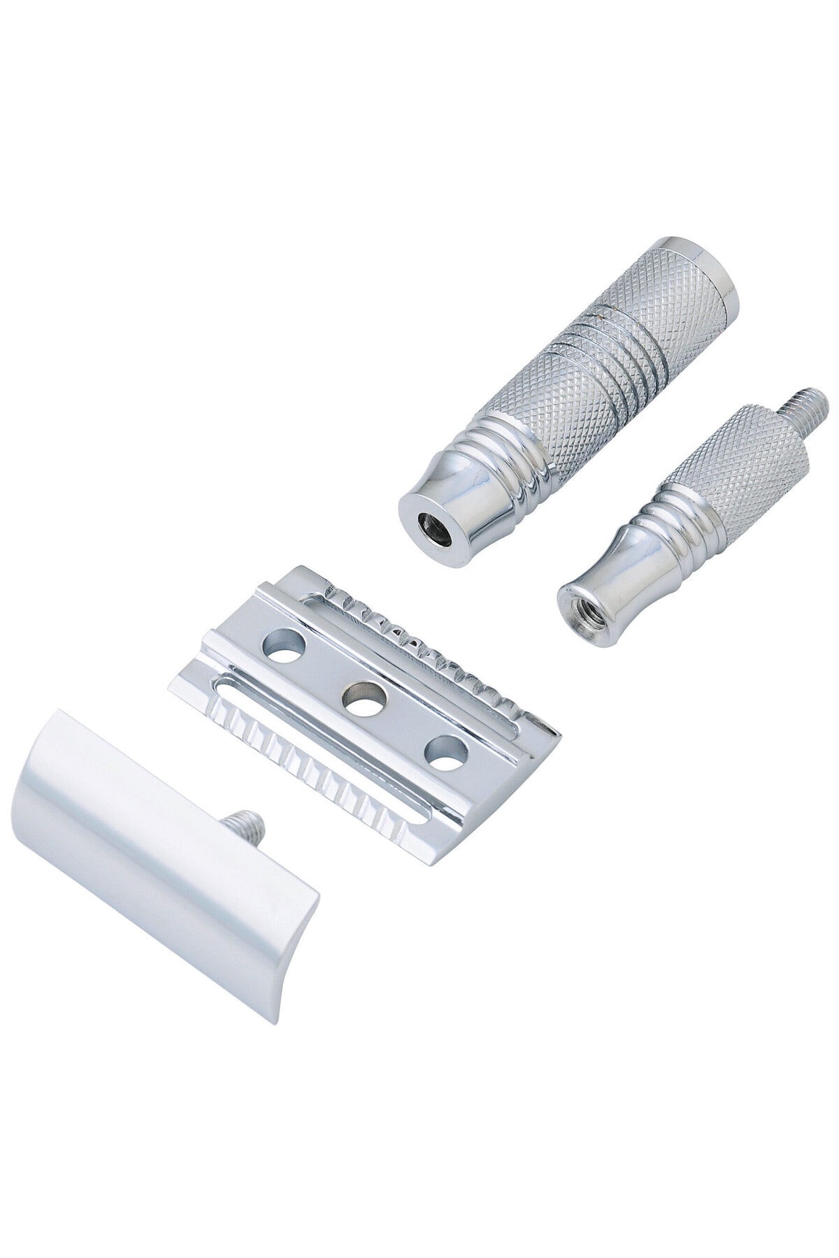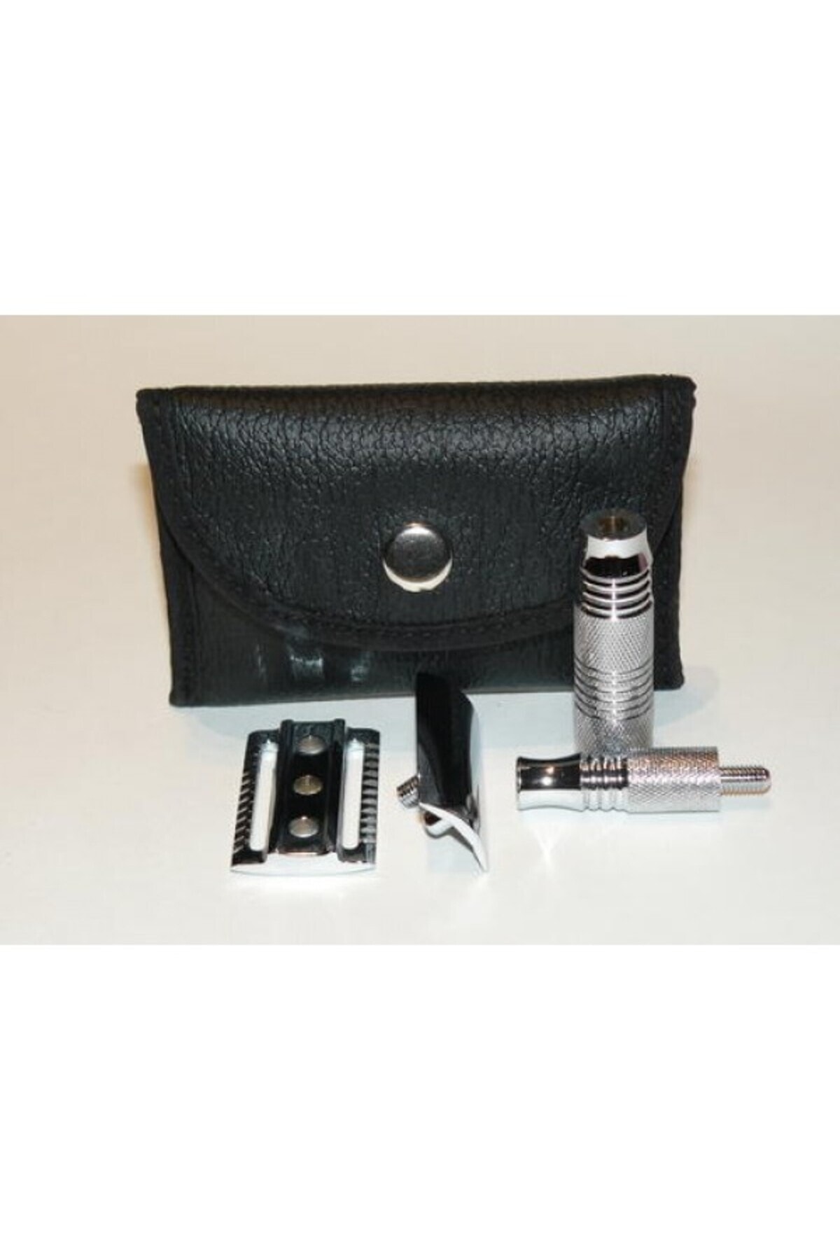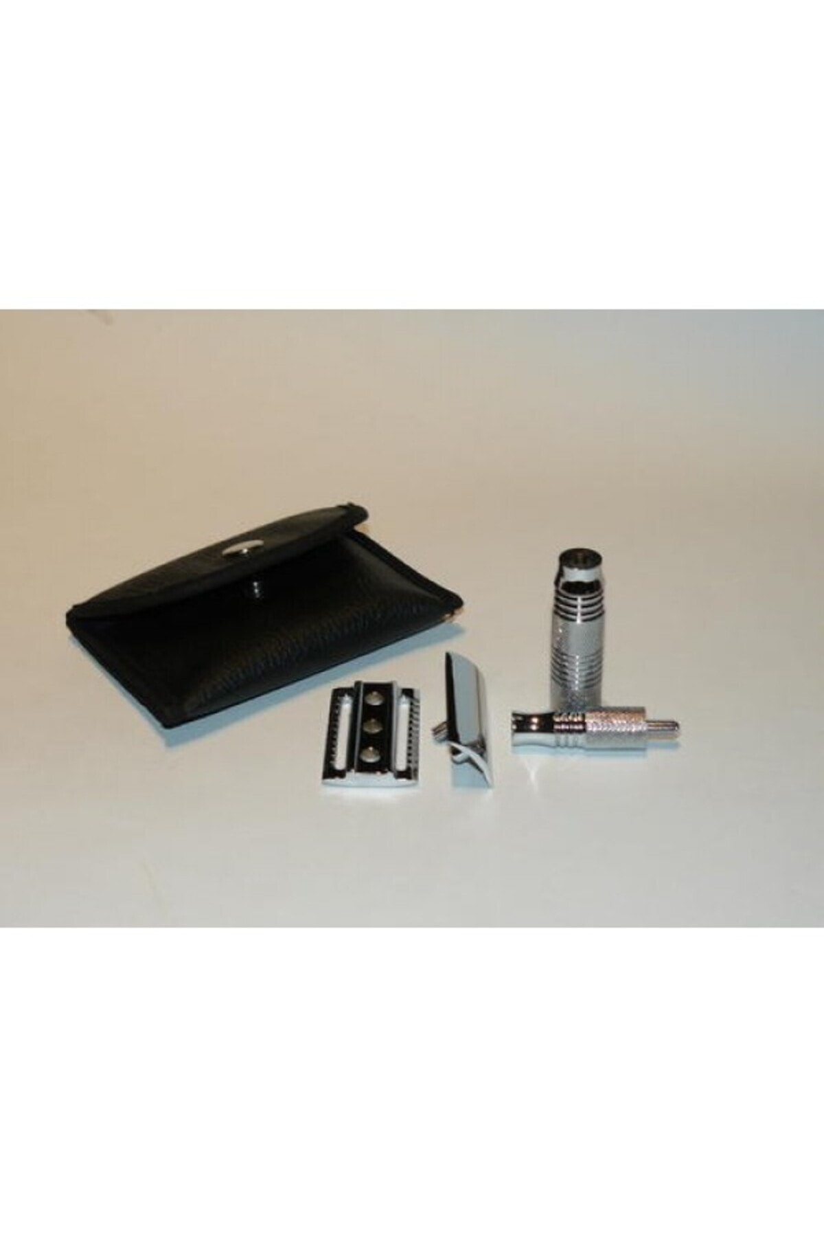 4 parçaya ayrılabilen tıraş makinesi çantasının içine rahatça yerleşebilmektedir. Deri seyahat kabının içinde ayrıca birkaç yaprak jilet taşıyabileceğiniz alan da bulunmaktadır.