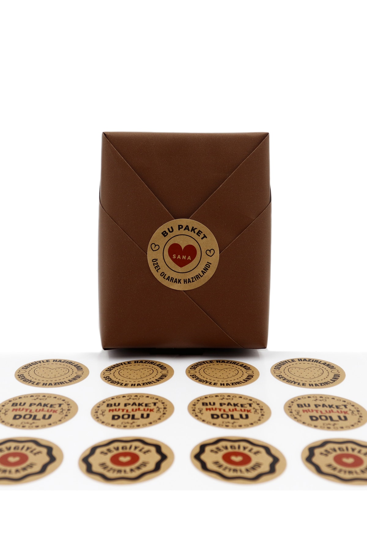 Ebat: 4 cm Yuvarlak Ürün Adedi: 24 Adet Renk: Kraft Kendinden yapışkanlı baskılı etiketler, reklam ve/veya bir bilgiyi ya da mesajı son kullanıcıya aktarmak amacıyla kullanılır.