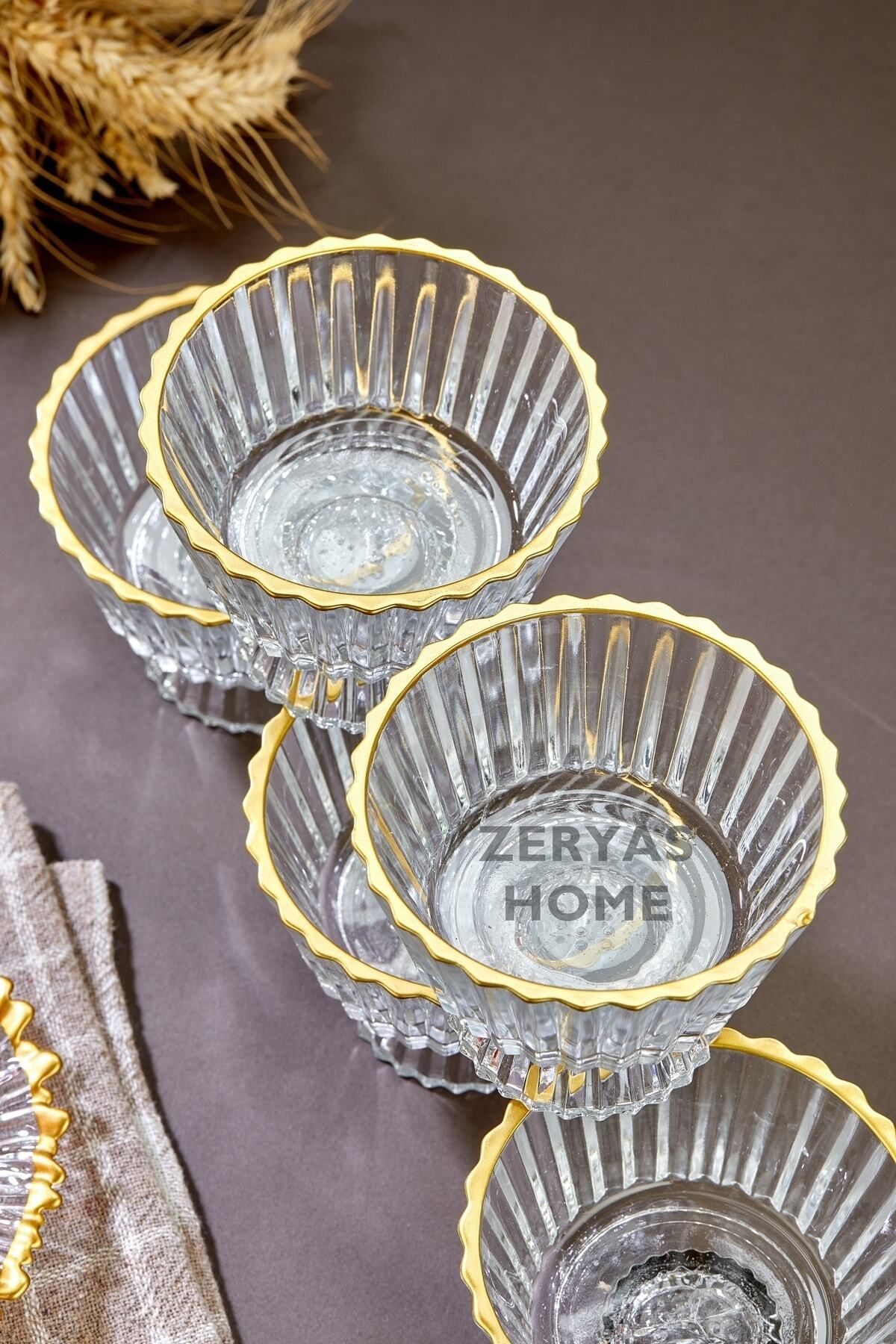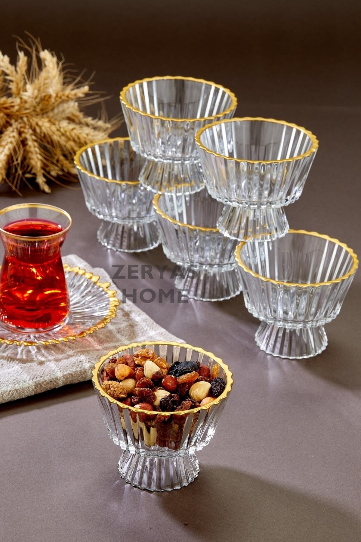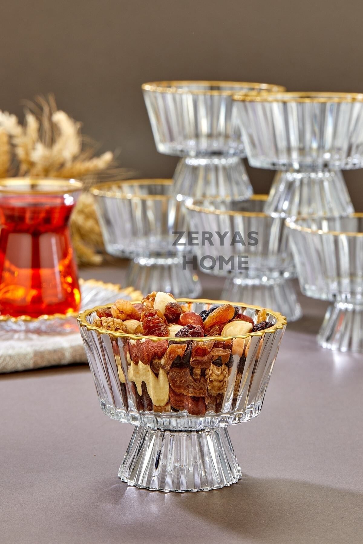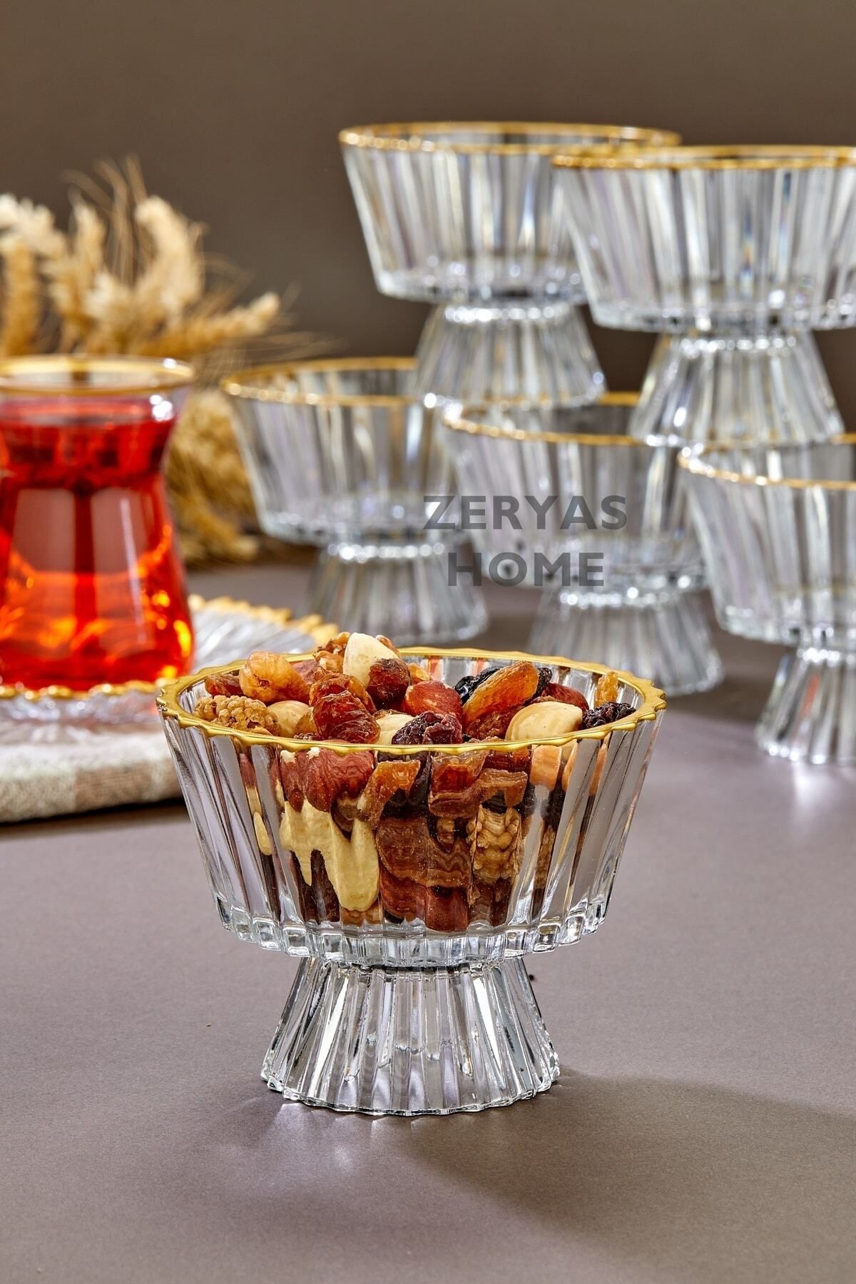 Altın yaldız detaylarıyla süslenmiş, şık ve zarif bir tasarıma sahip olan bu sunum kasesi, çerezleriniz ve lokumlarınız için ideal bir sunum aracıdır