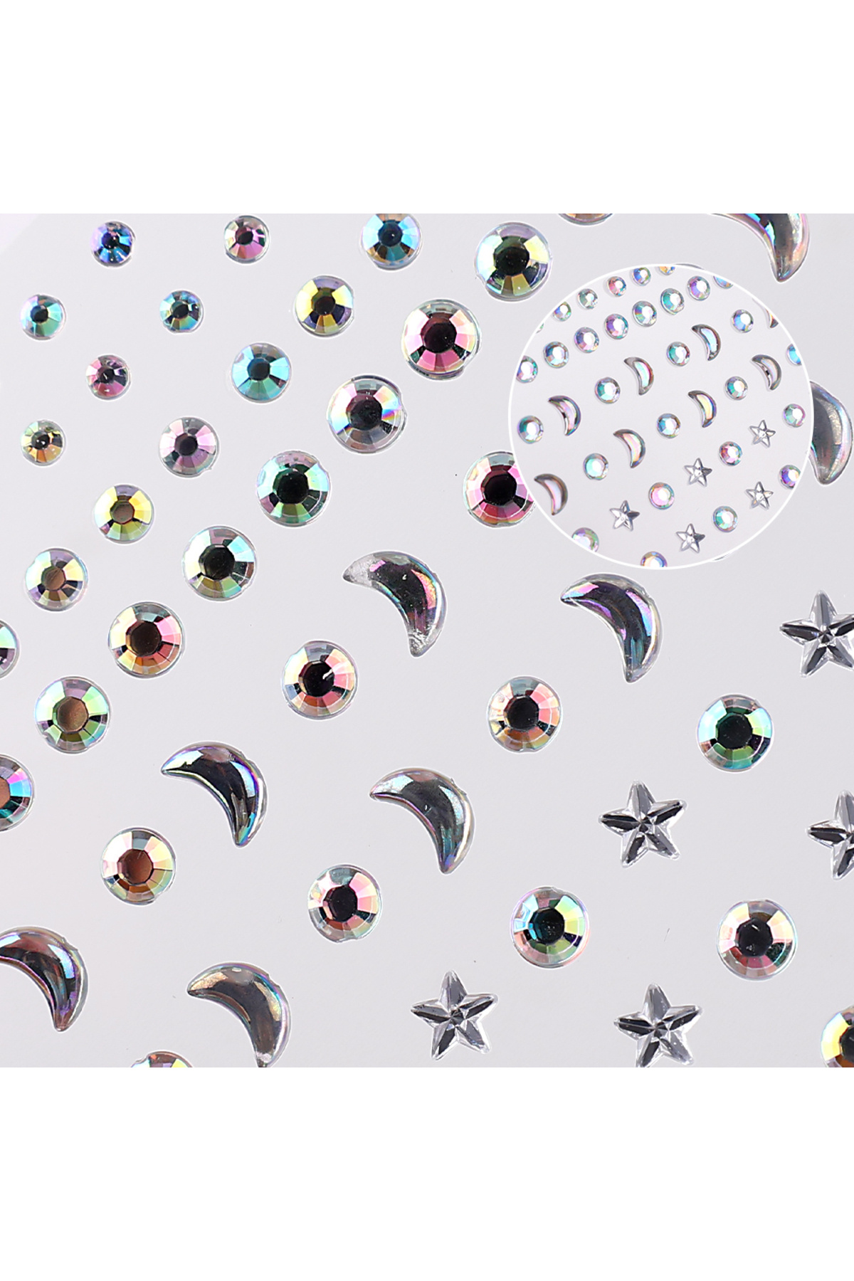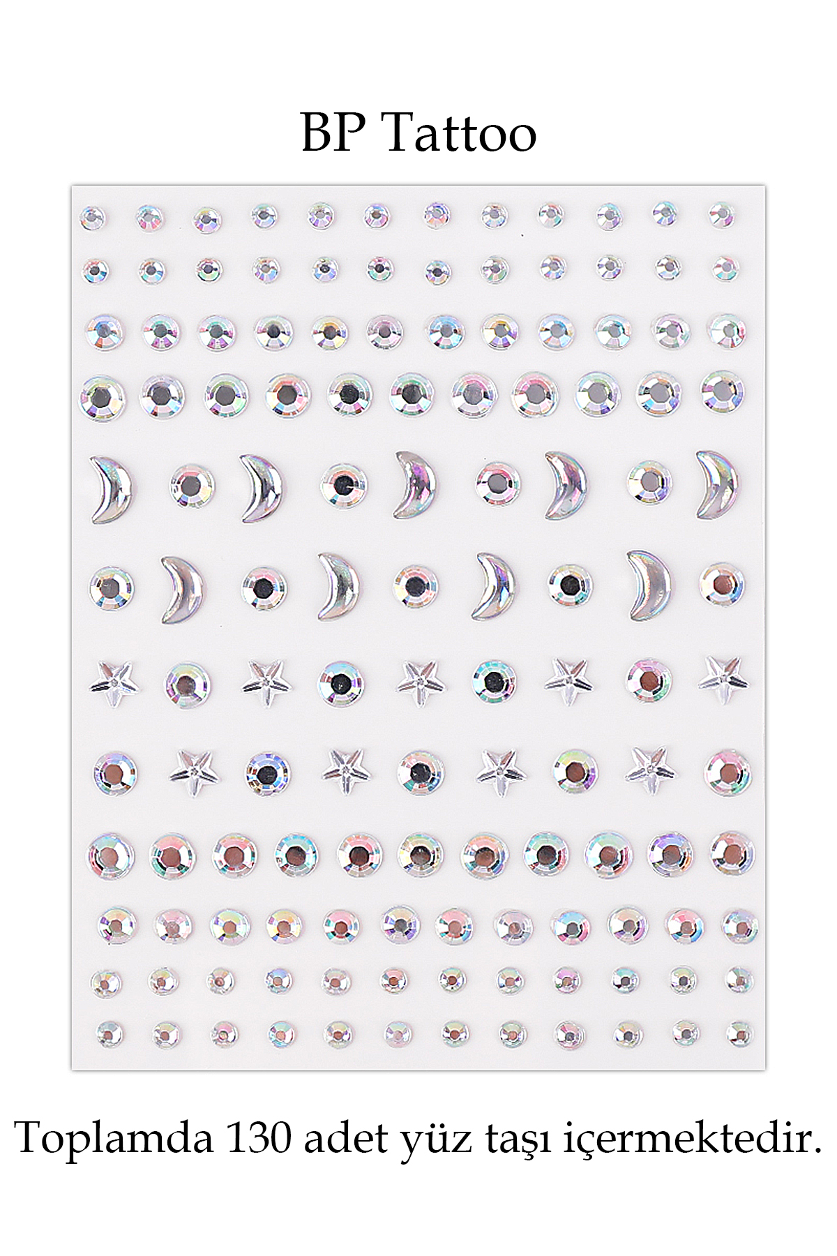Ürün adı: Bp tattoo ay yıldız ve yuvarlak figürlü holografik yüz taşı.
