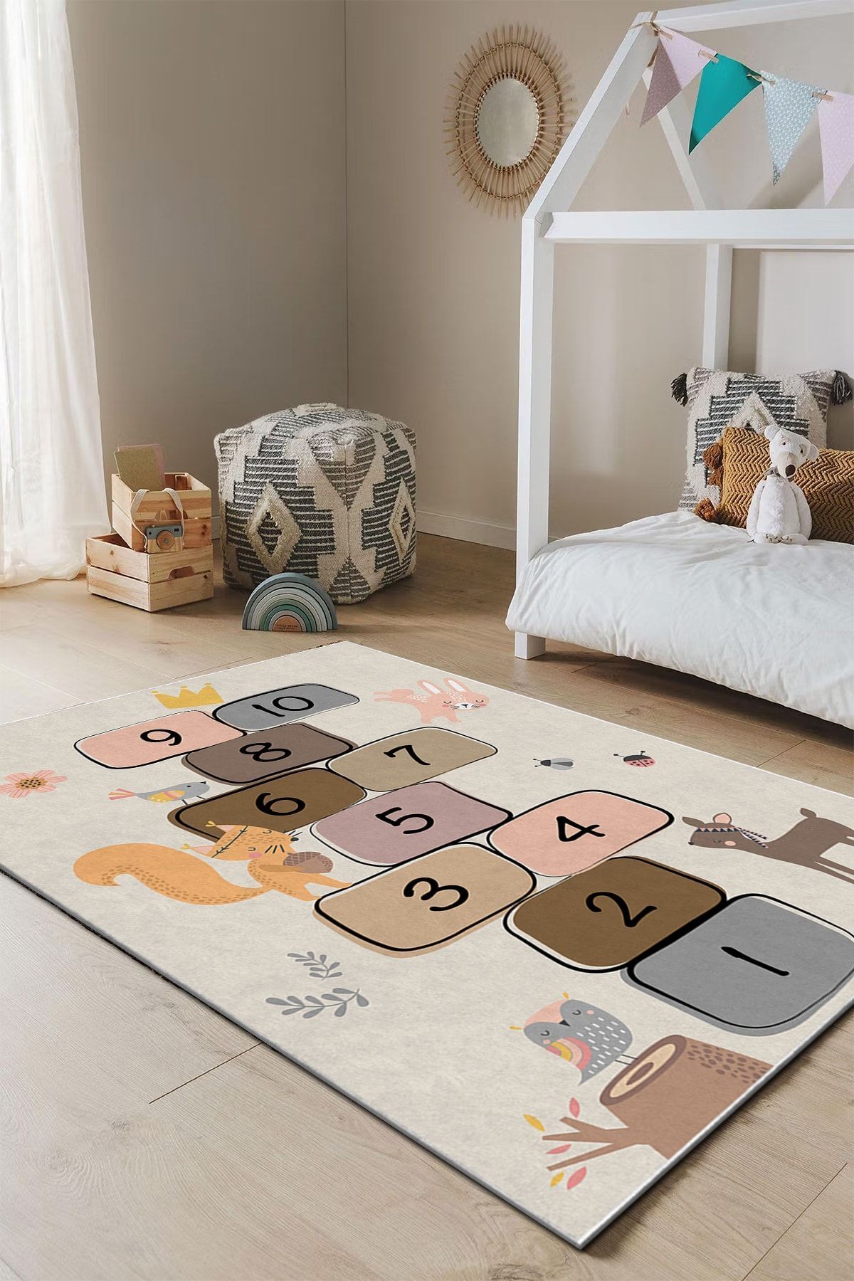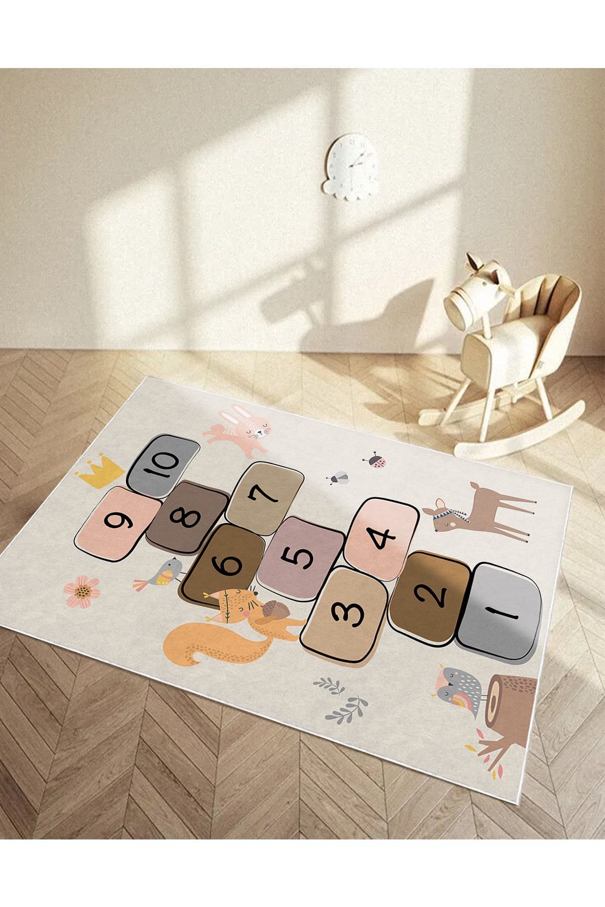 Kaymaz Makinede Yıkanabilir İsimli Çocuk Odası Halısı Seksekli Oyun Halısı Çocuk Halısı-22