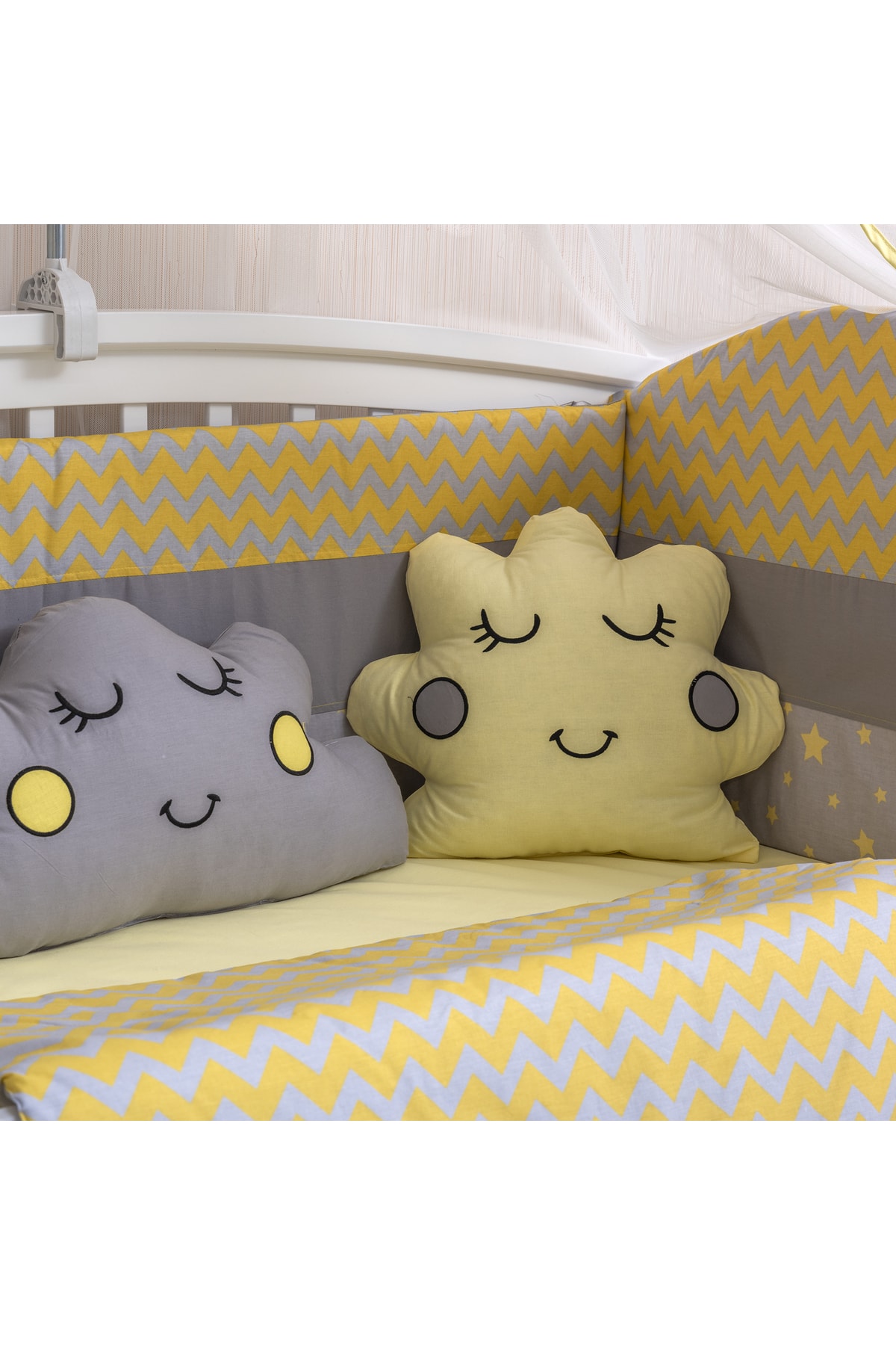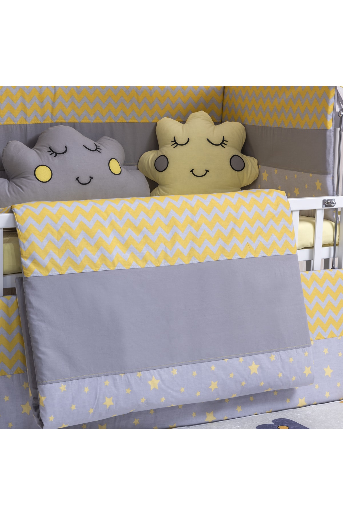 Yan korumaları baş korumaları ve yorganı fermuarlıdır.