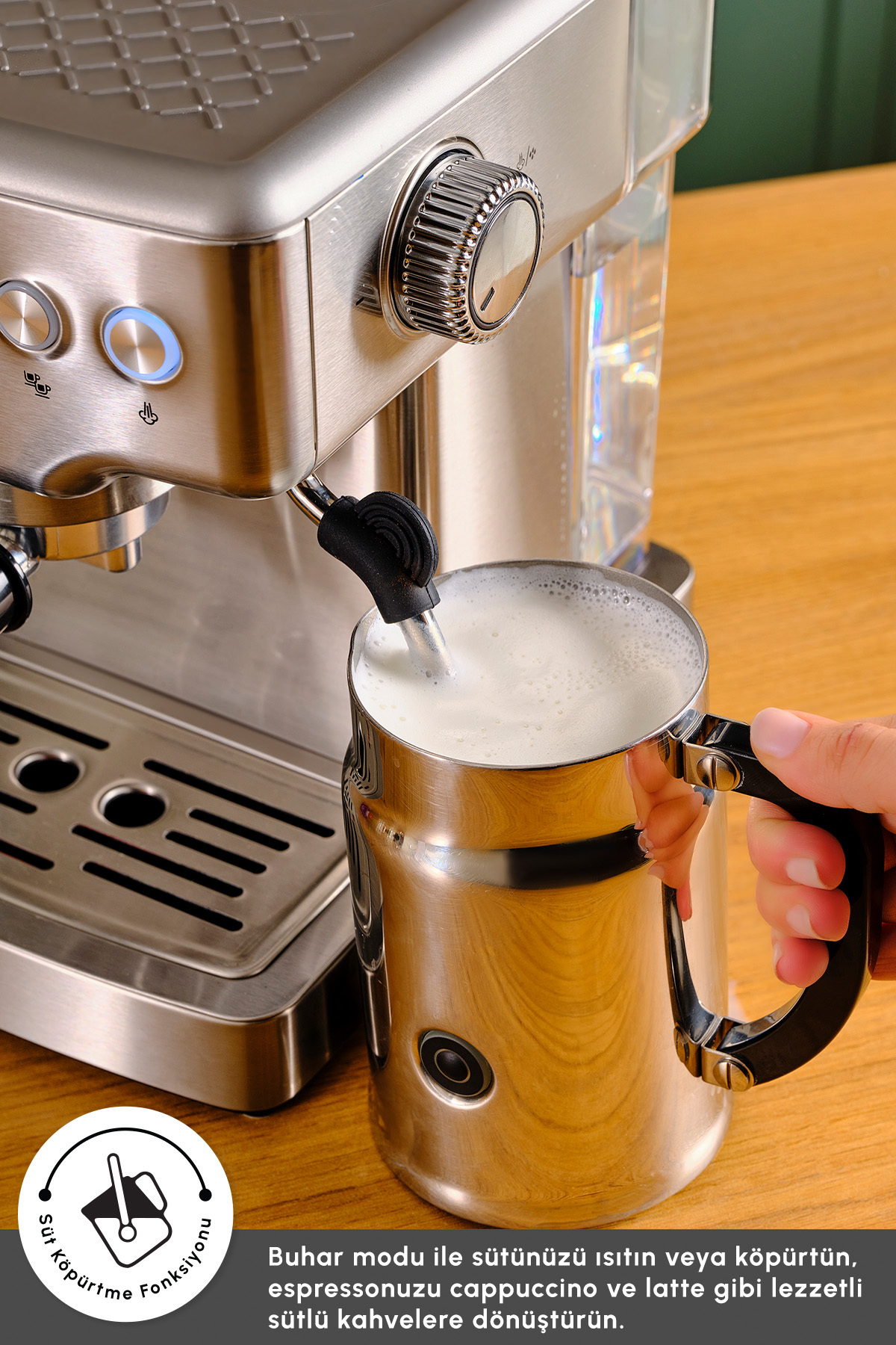 Bu sayede espresso kahvenizi, cappuccino ve latte gibi lezzetlere dönüştürebilirsiniz.