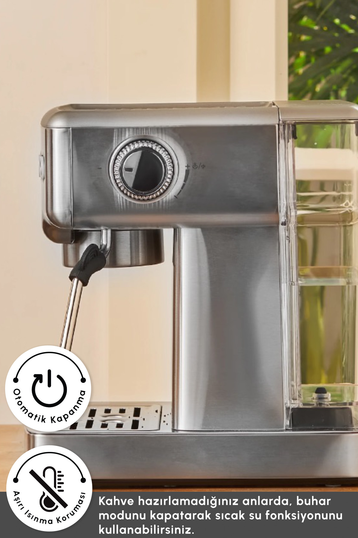 Sıcak Su Çıkışı Buhar çıkış modu kapalı iken, ürününüzün buhar çubuğundan çıkacak sıcak su ile espressonuzu, americano gibi farklı içeceklere dönüştürebilirsiniz.