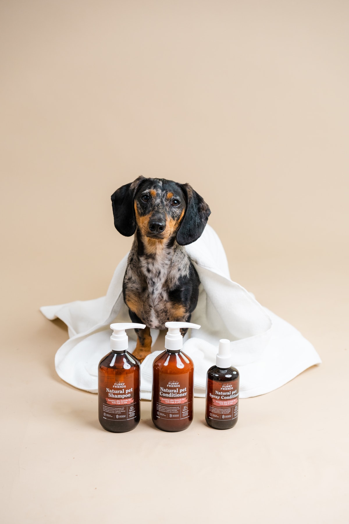 Furry Family kürk bakım ürünleri %100 vegandır, İsveç'te üretilmiştir ve önce insanlar üzerinde test edilmiştir.