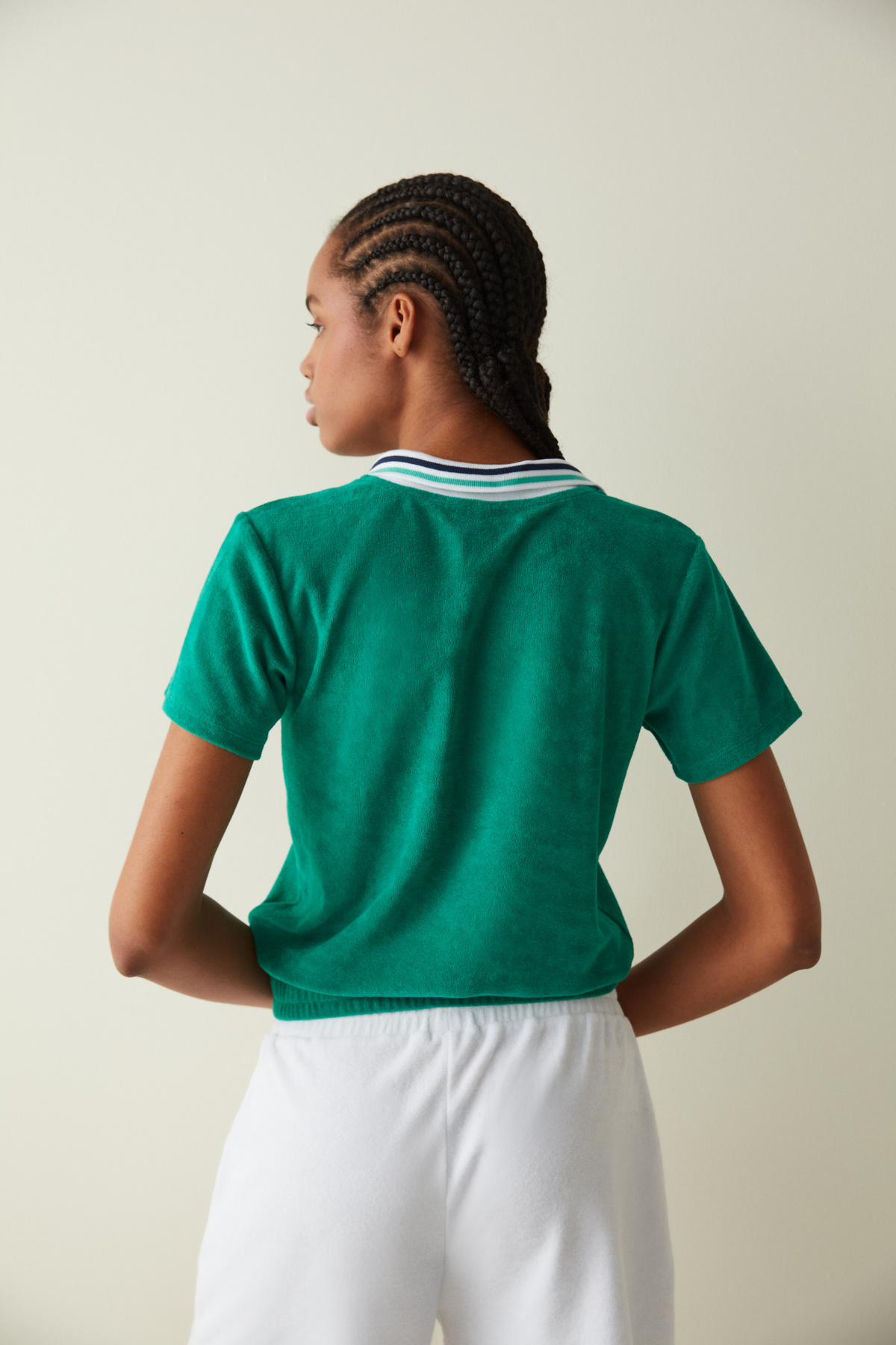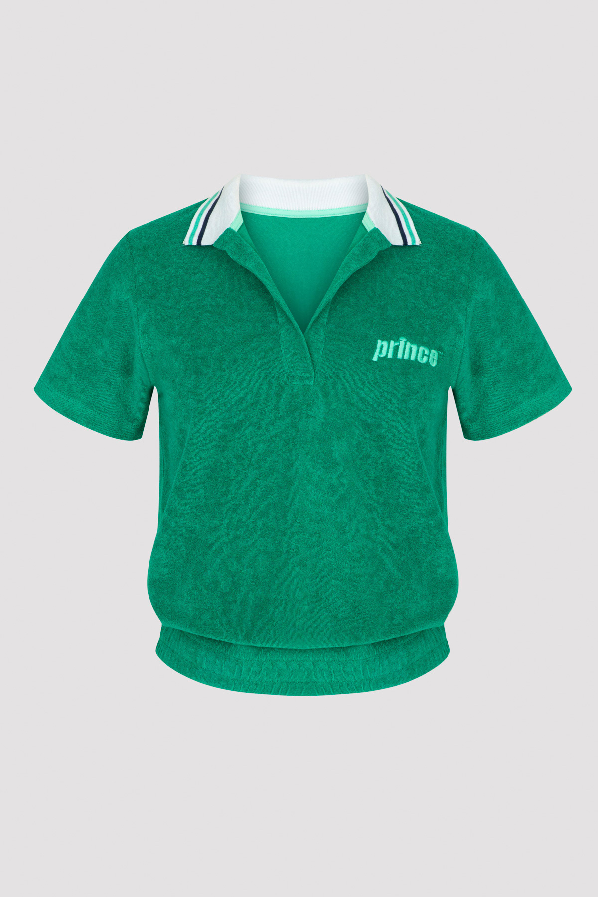 Prince Koleksiyonunun bir parçası olarak tenis tutkunlarına özel olarak üretilmiş, havlu kumaşıyla spor ve egzersizlerdeki terin çabuk kurumasını sağlayan, rahat kalıbıyla konfor sağlayan Terrycloth Tişört.