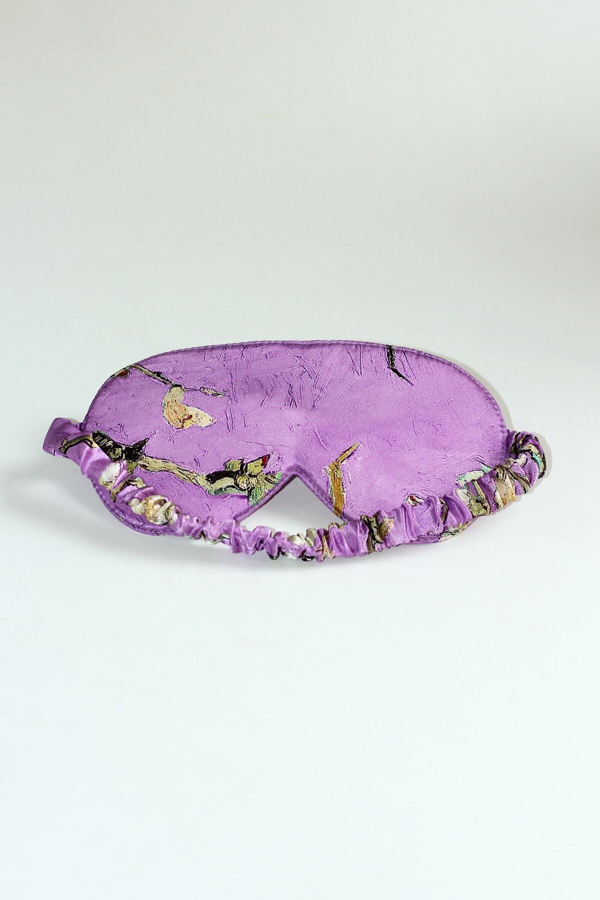 Nomadsfelt Saf İpek Uyku Maskesi Göz Bandı | Van Gogh Badem Ağacı | Mor Saf ipek, yumuşak dokusuyla cildi tahriş etmez, göz çevresinin nem dengesini korumasına yardımcı olarak kırışıklık oluşumunu engeller.