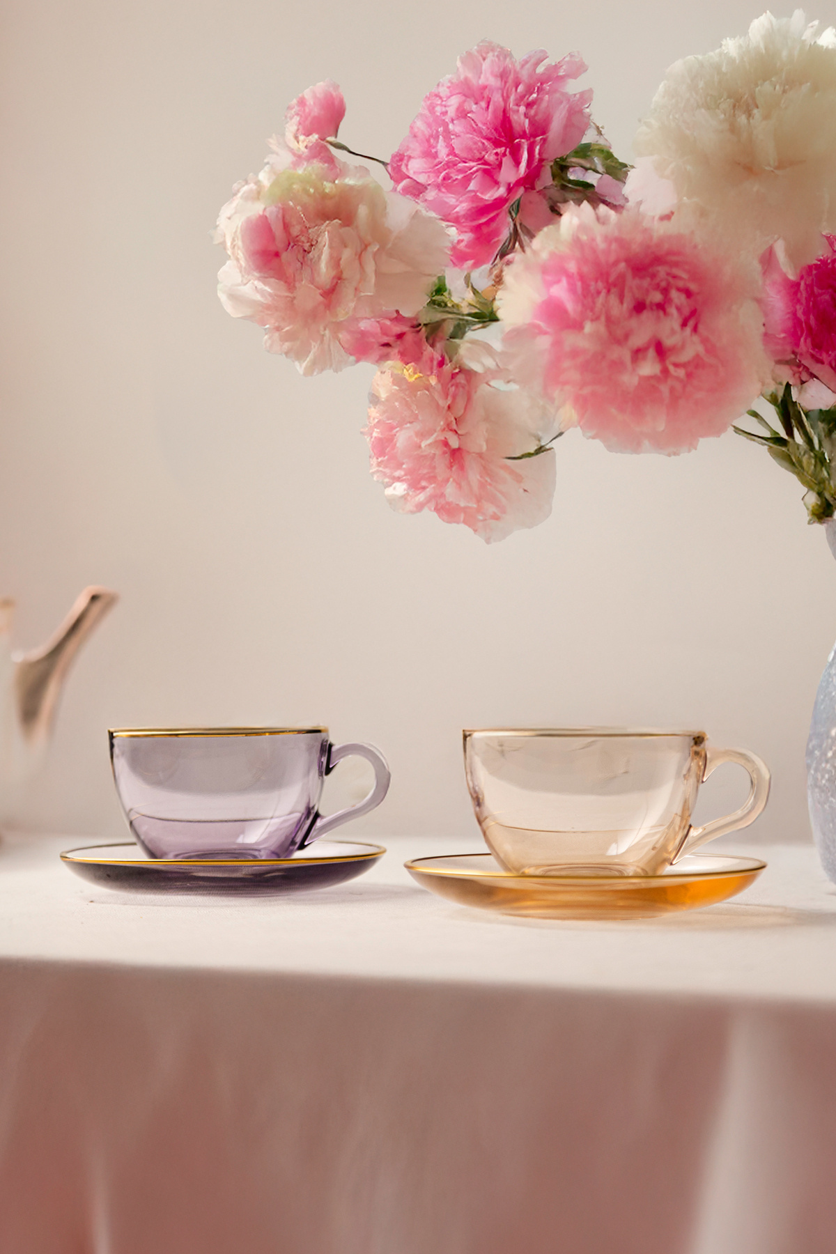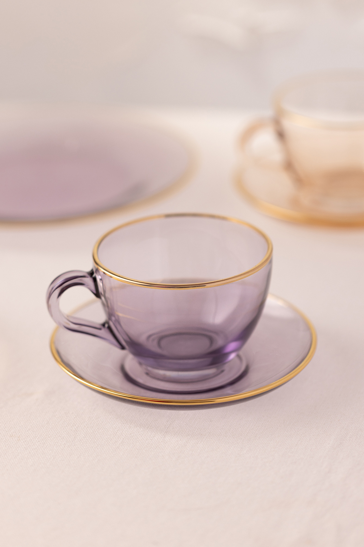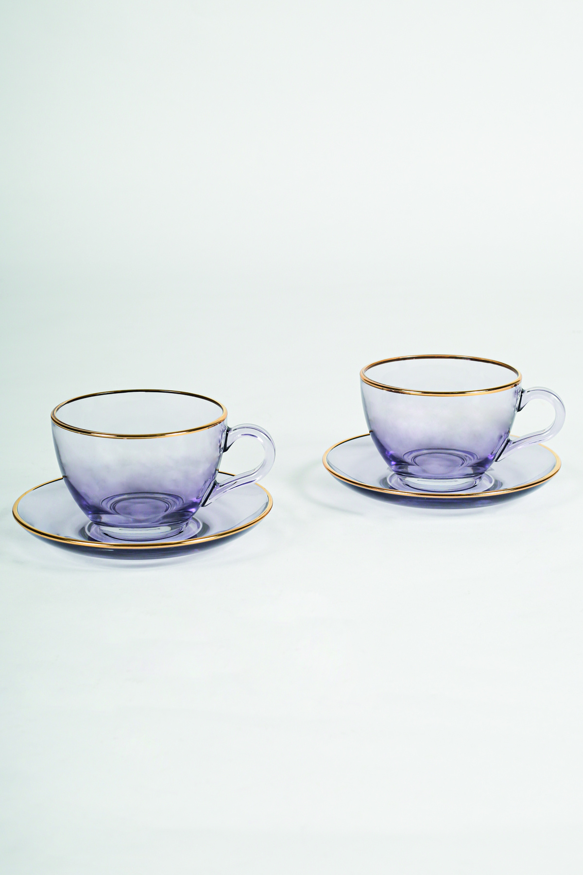 Hacim: 240 cc Renk: Mor Malzeme: %100 Cam Paket içeriği: 2 adet çay fincanı ve 2 adet fincan tabağı Cam Ölçüsü Fincan: Yükseklik: 6,4 cm Ağız: 9,1 cm Dip: 4 cm Genişlik: 11,6 cm Fincan Tabağı: Yükseklik: 6,4 cm Ağız: 9,1 cm Dip: 4 cm