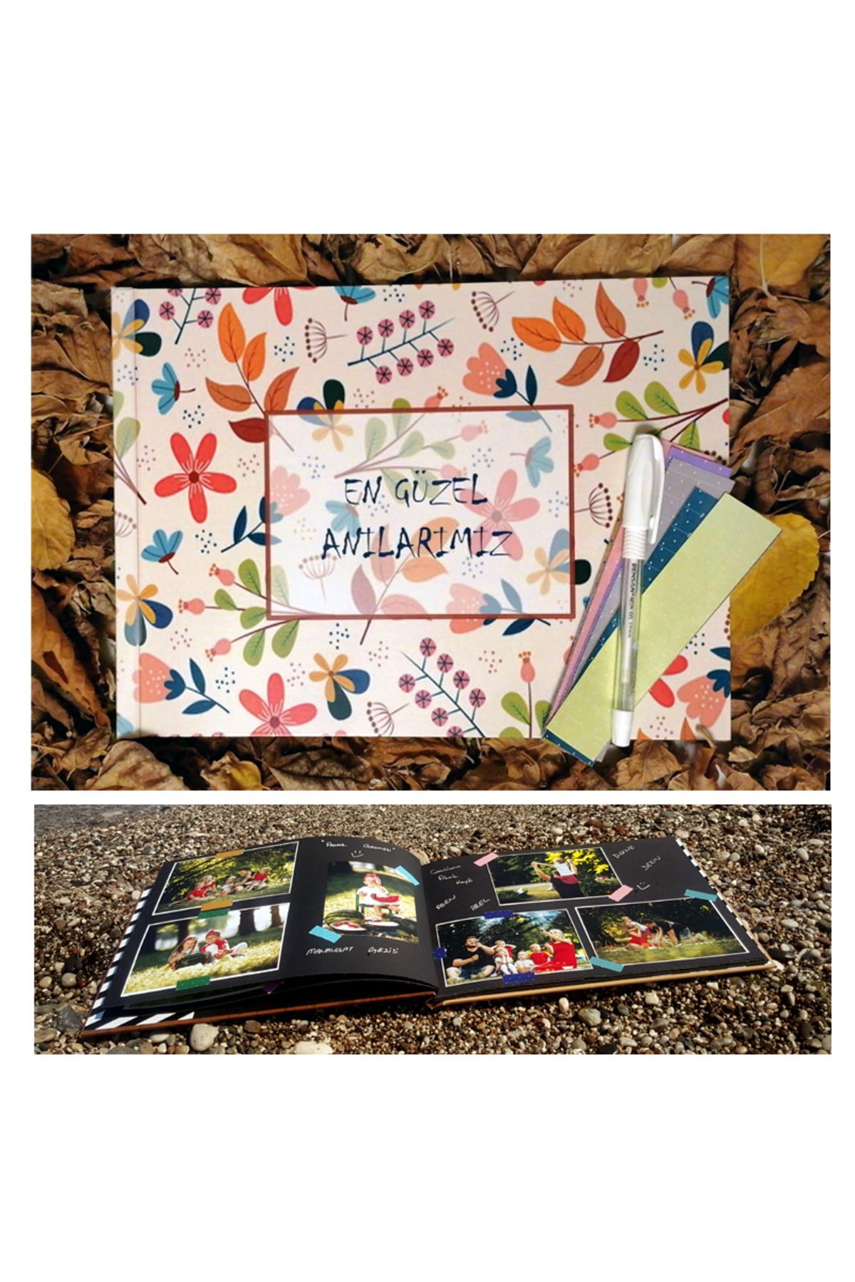 Engüzel anılarımız Fotoğraf Albümü Anı defterinize paket içerisinde bulunan sticker ile fotoğraflarınızı yapıştırıp, yine paket içerisinde bulunan beyaz kalem ile hatıralarınızı not edebilirsiniz.