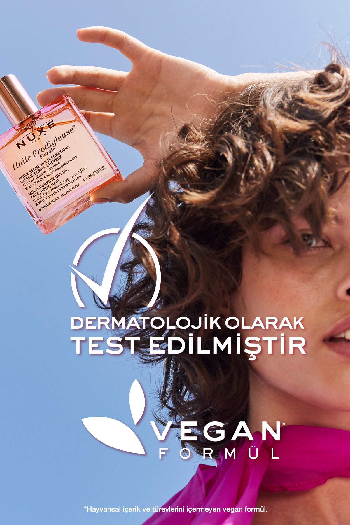 NUXE, Huile Prodigieuse® formülünü oluşturmak için %100 bitkisel kökenli 7 değerli yağı seçti: Tsubaki, Argan, Makadamya, Hodan, Kamelya, Fındık ve Tatlı Badem yağları.