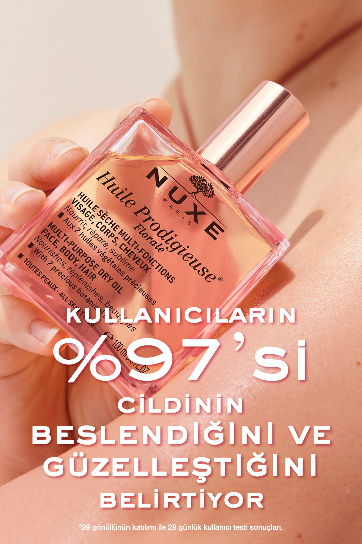 Huile Prodigieuse® Florale, tüm cilt tiplerine büyüleyici saten bir ışıltı kazandırır.