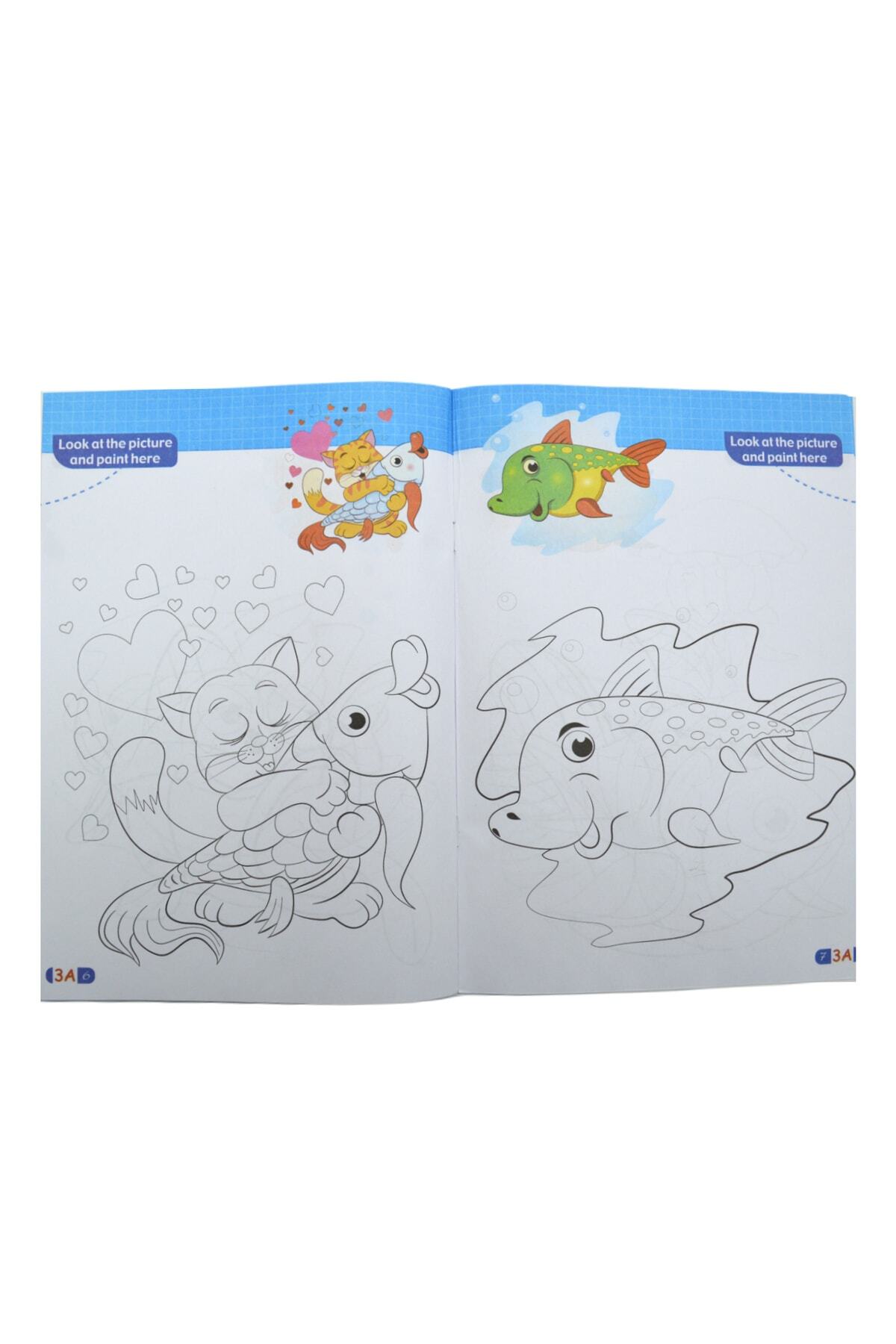 *İngilizce yol gösteren açıklamalarla çocuklar için boyama kitabı.
