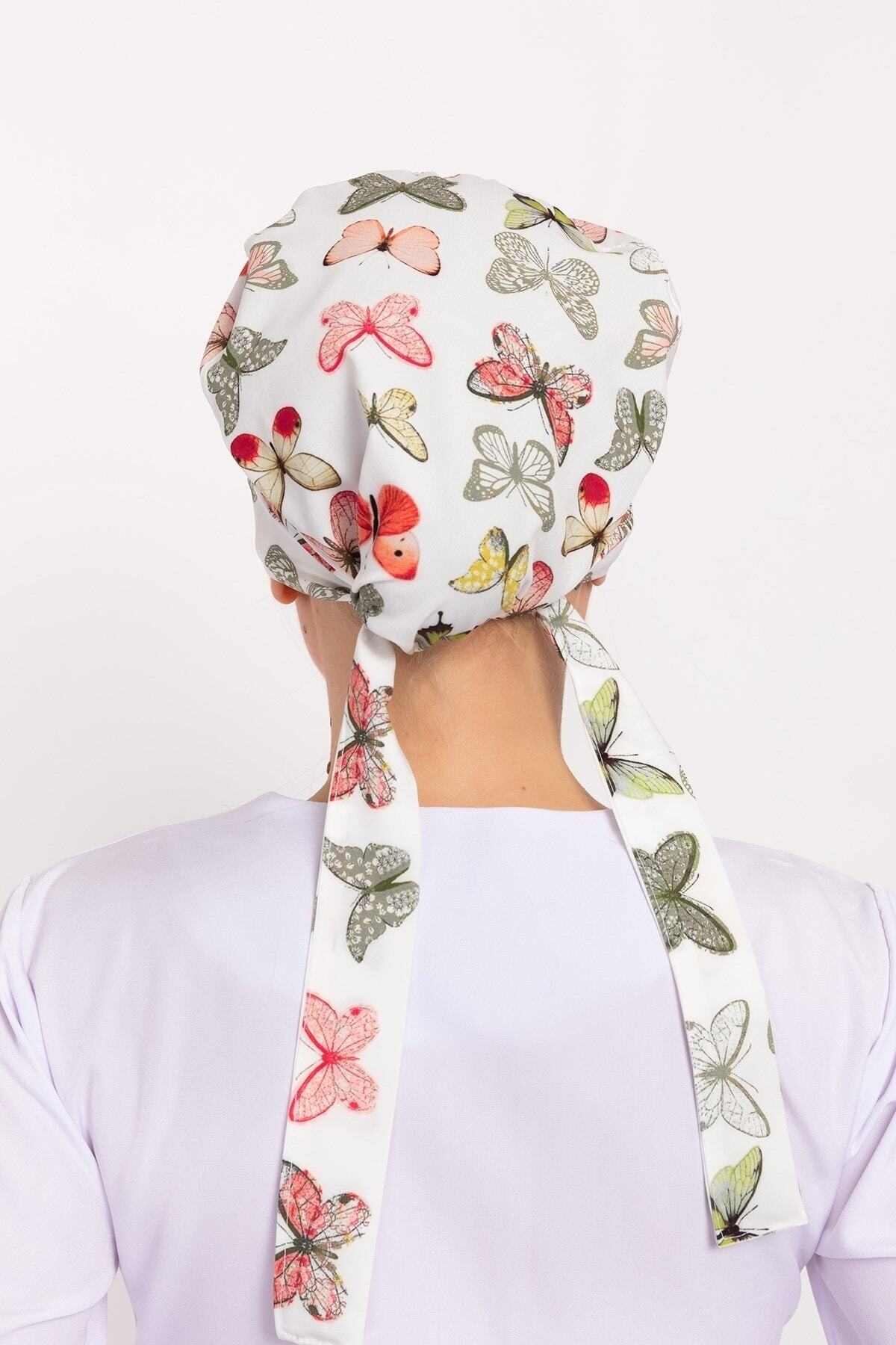 Kadın Yeşil Kelebek Desenli Tesettür Doktor Hemşire Hastane Aşçı Cerrahi Bone