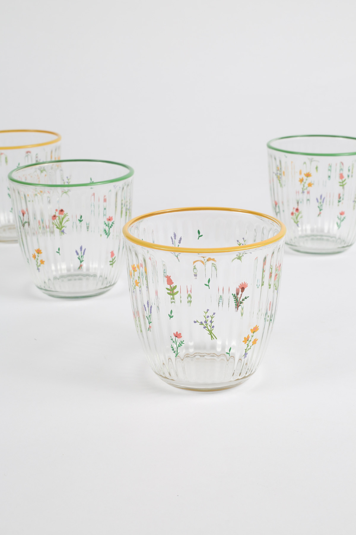 Hacim: 290 cc Renk: Yeşil Rim - Hardal Rim Malzeme: %100 Cam Paket içeriği: 4 adet su bardağı Uzun süreli kullanım için elde yıkanması tavsiye edilir.